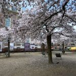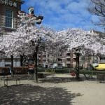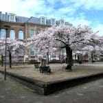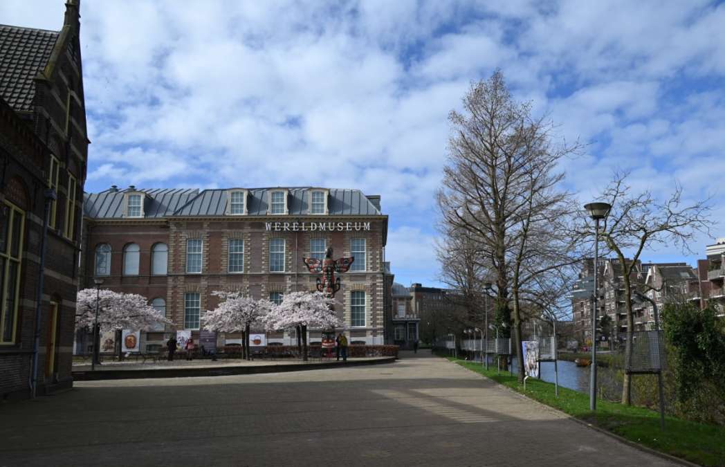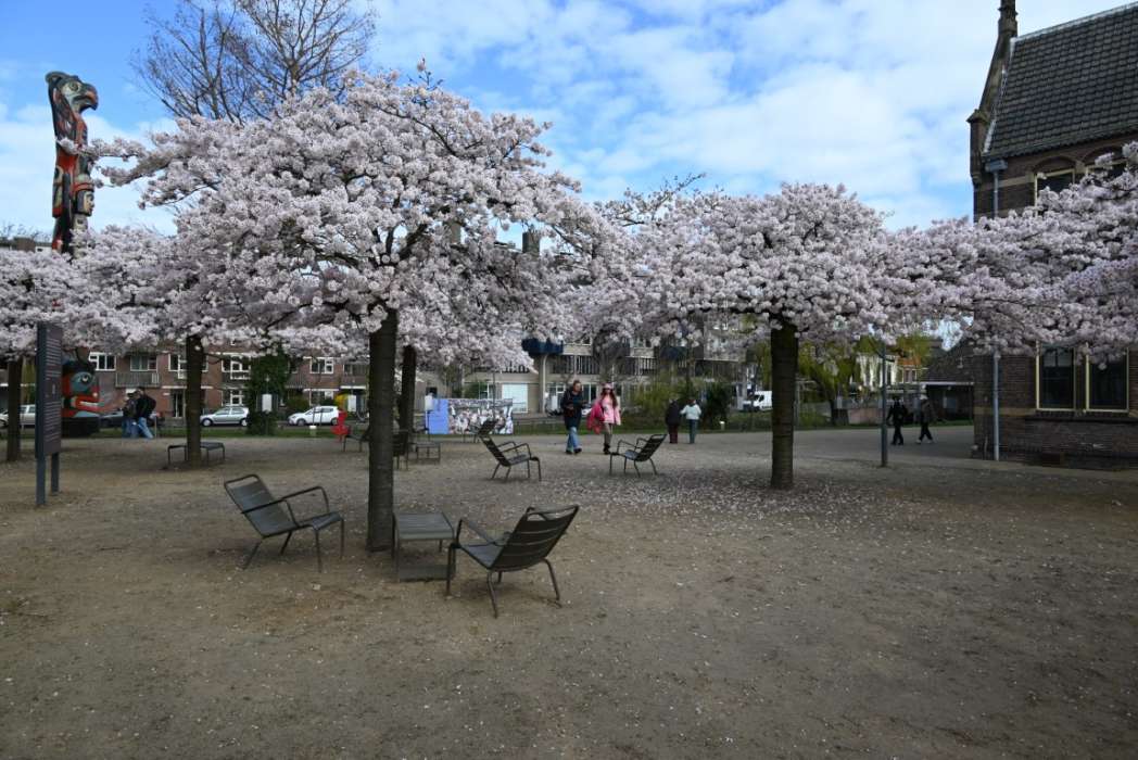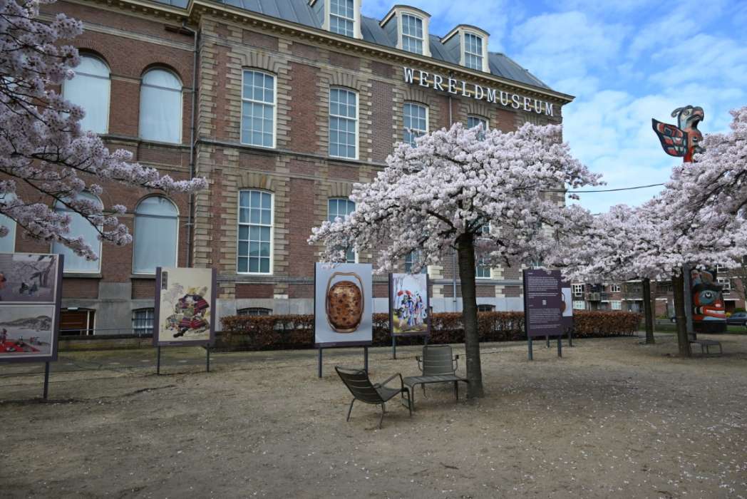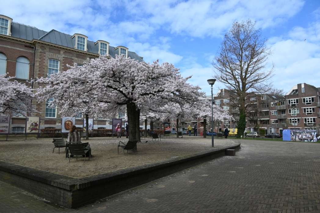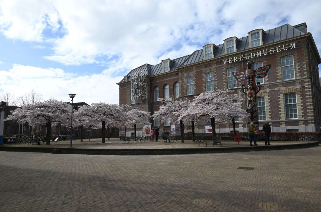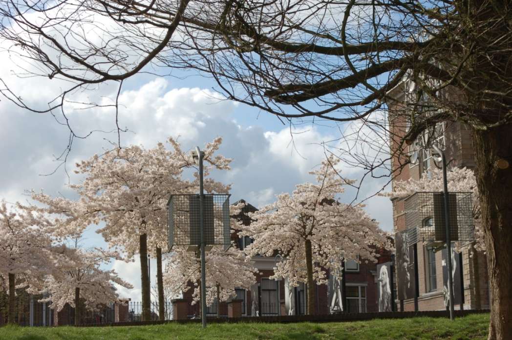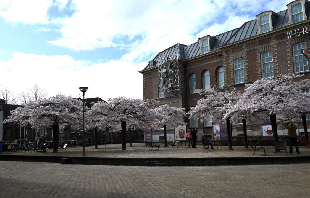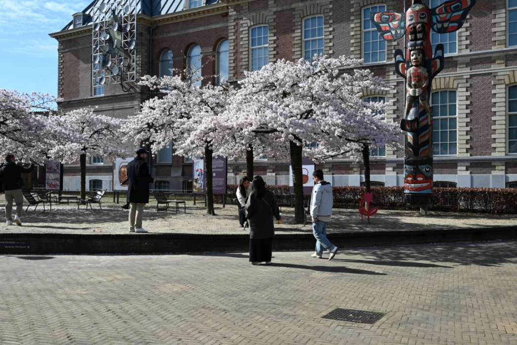 Het is elk jaar weer een prachtig gezicht de kersenbloesem van de Sakura die in bloei staat in de tuin van het Wereldmuseum aan de Steenstraat.