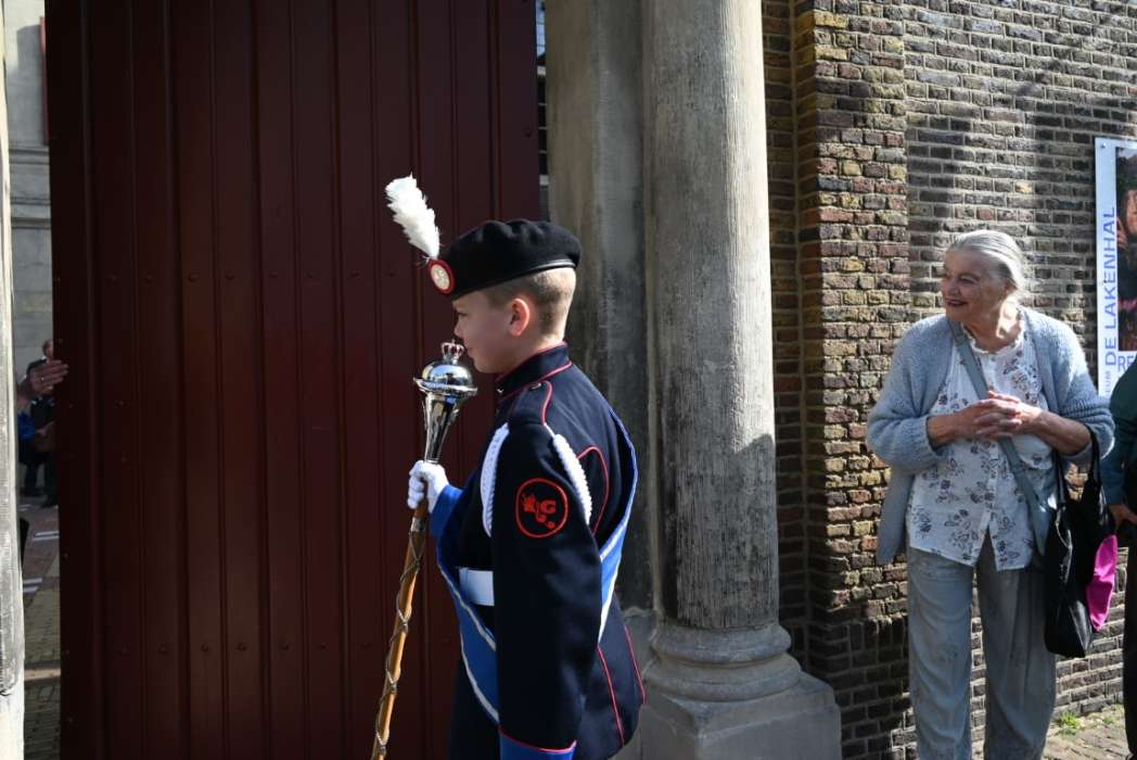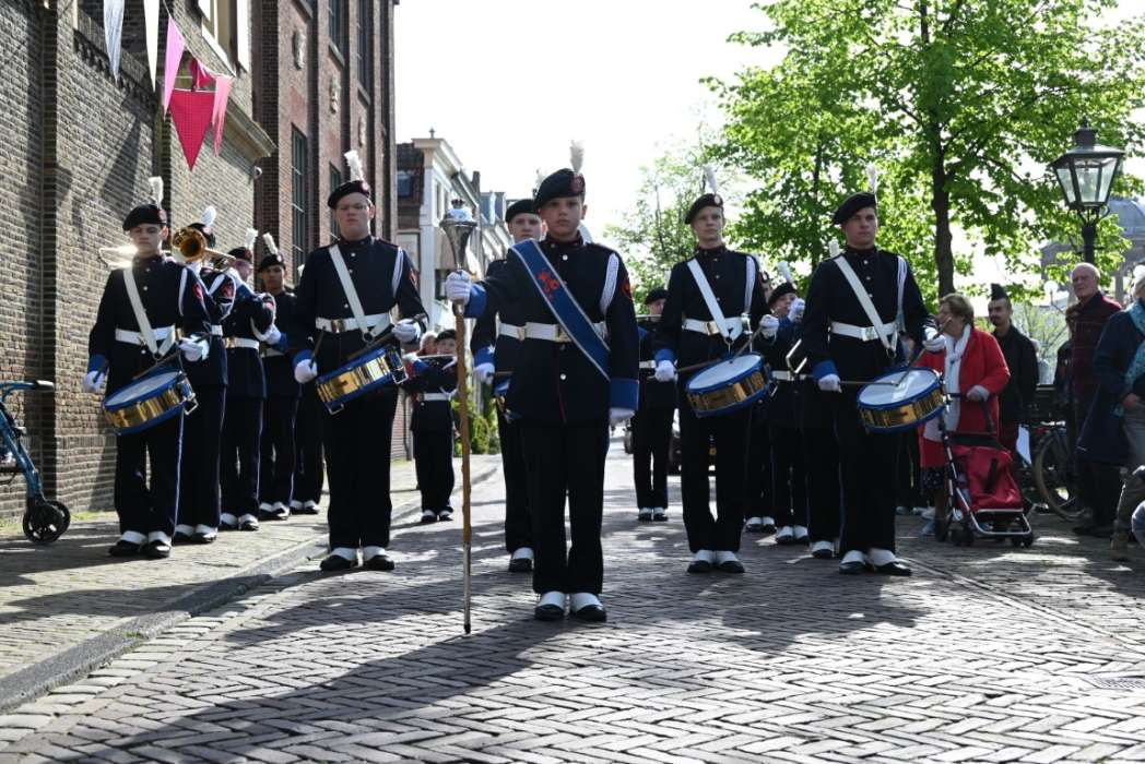 Tamboer Maître Brent Trippenzee klopte vol trots op de deur, mooie foto.