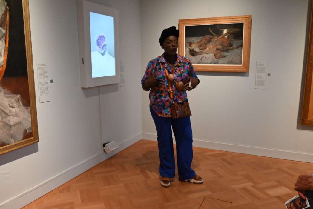 Janice Deul, modejournaliste en modeactiviste had het over begrippen schoonheid en lelijkheid bij het videokunstwerk ‘Amethyst’.