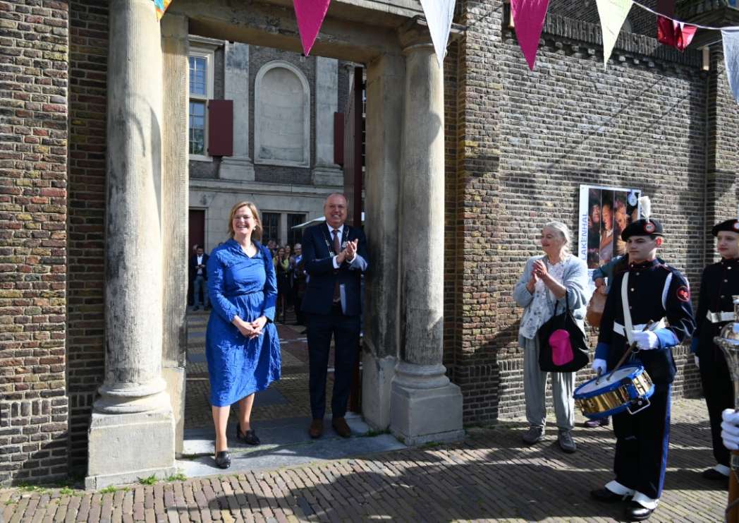 Directeur Tanja Elstgeest en burgemeester Peter van der Velden waren blij verrast met de aubade.