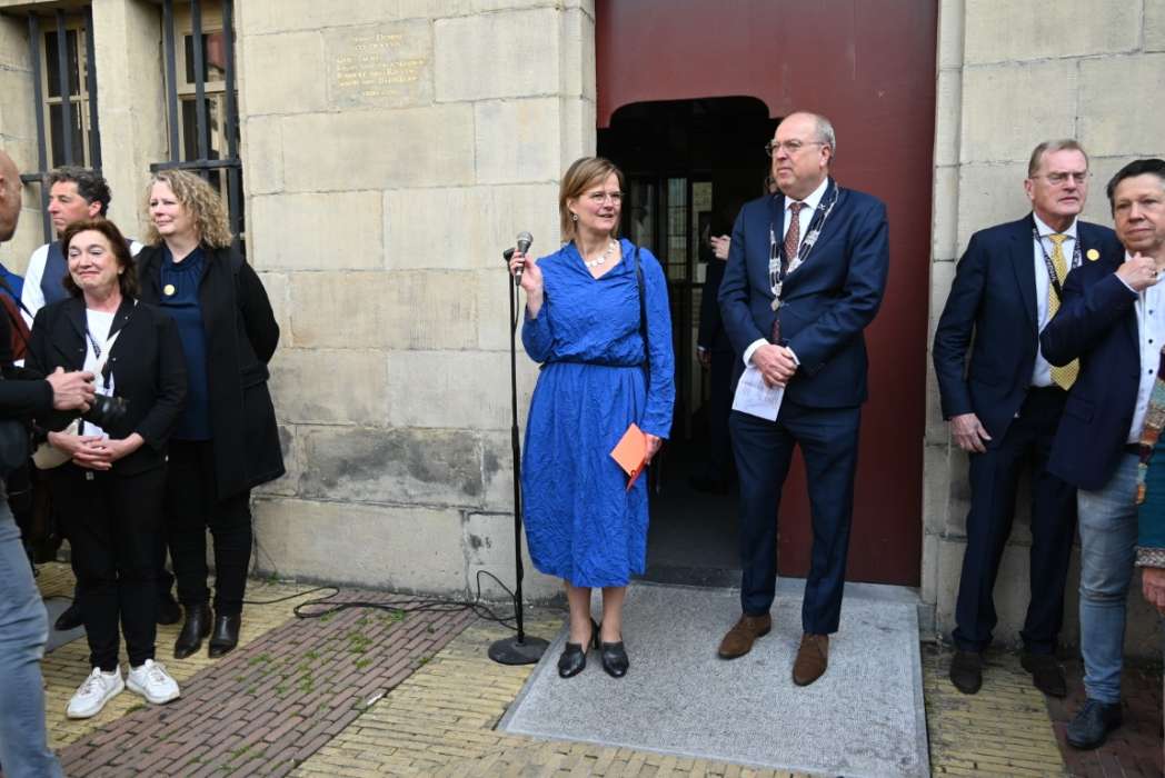 Voor iedereen naar binnen mocht, waren er eerst twee korte toespraken van Tanja Elstgeest en Peter van der Velden.