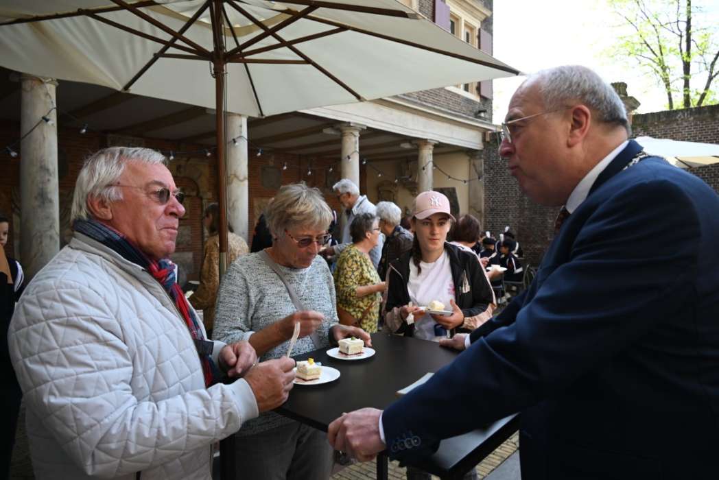 De taart werd aangesneden door Peter van der Velden, Tanja Elstgeest en wethouder Yvonne van Delft.