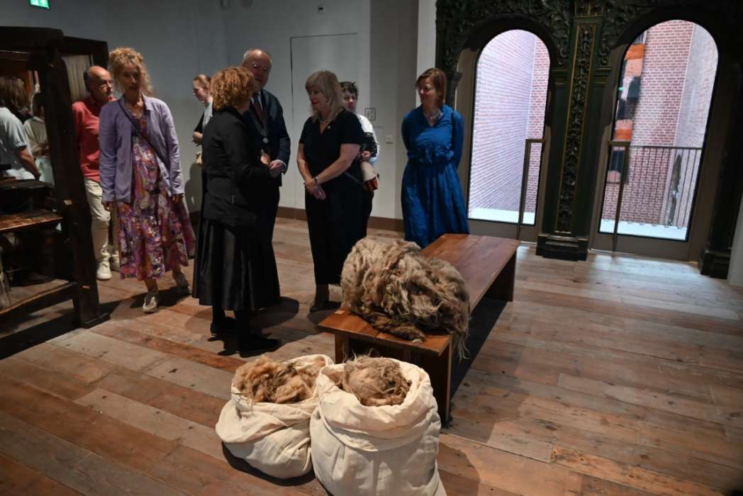 Voor ze het wandkleed konden zien moest eerst een grote pluk wol uit elkaar gehaald worden.