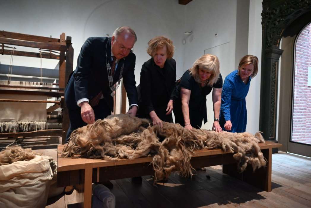 Samen met Claudy Jongstra haalden Peter van der Velden, Yvonne van Delft en Tanja Elstgeest de wol uit elkaar.