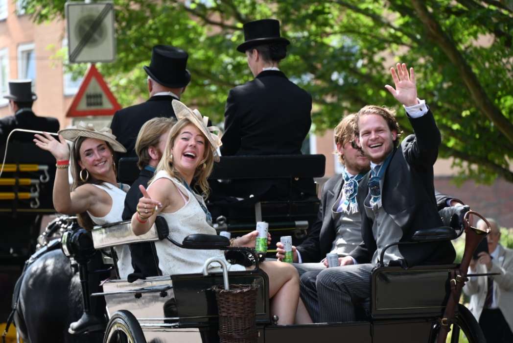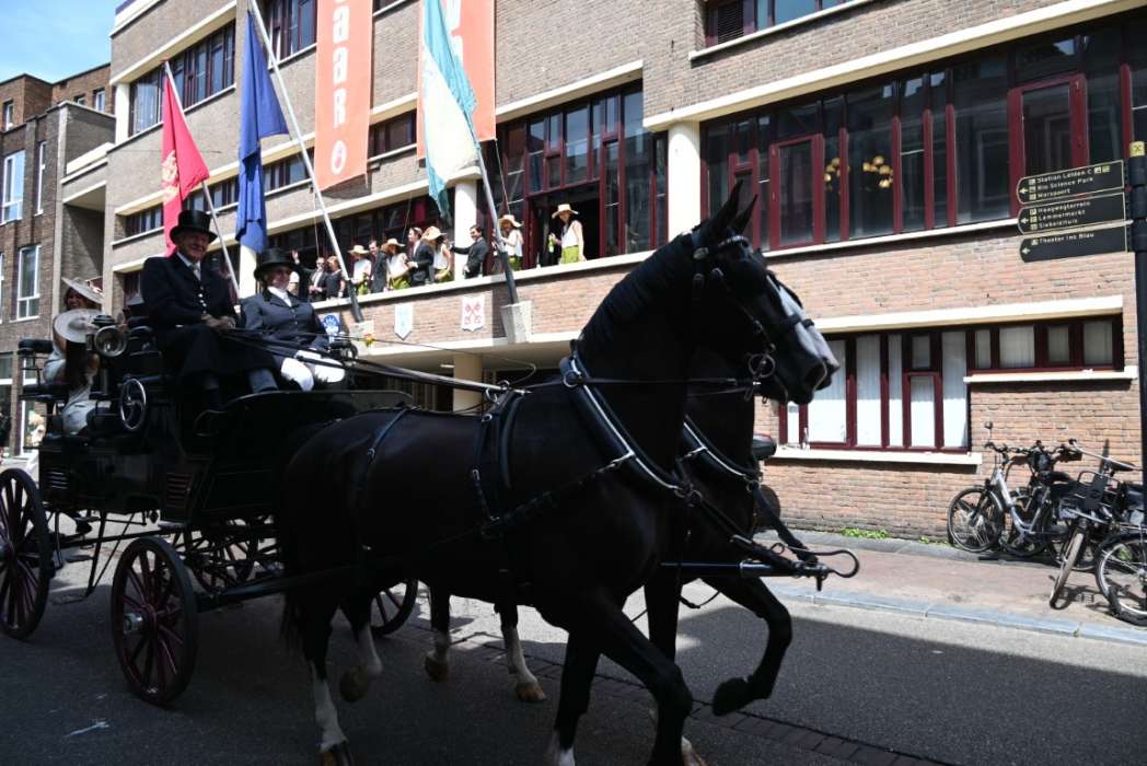 Vroeger was de Maskerade een echte optocht tegenwoordig meer een rij koetsjes met daarin allerlei commissies en besturen. Maar ja met de huidige studiedruk is een optocht in elkaar zetten natuurlijk wel een dingetje. Na de koetsjes volgde een lange stoet reünisten.