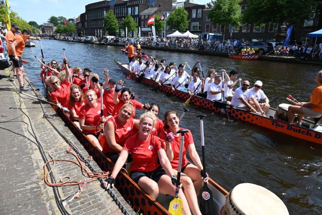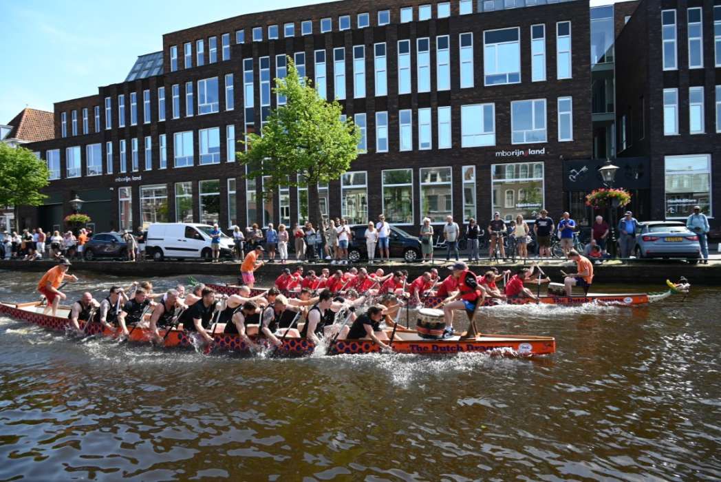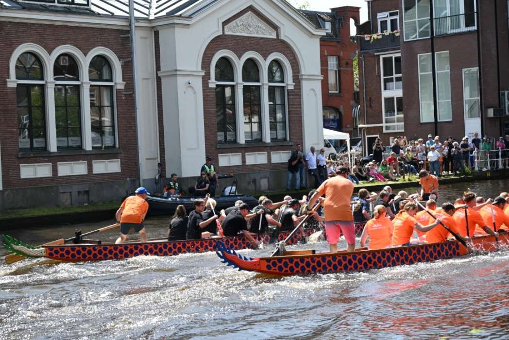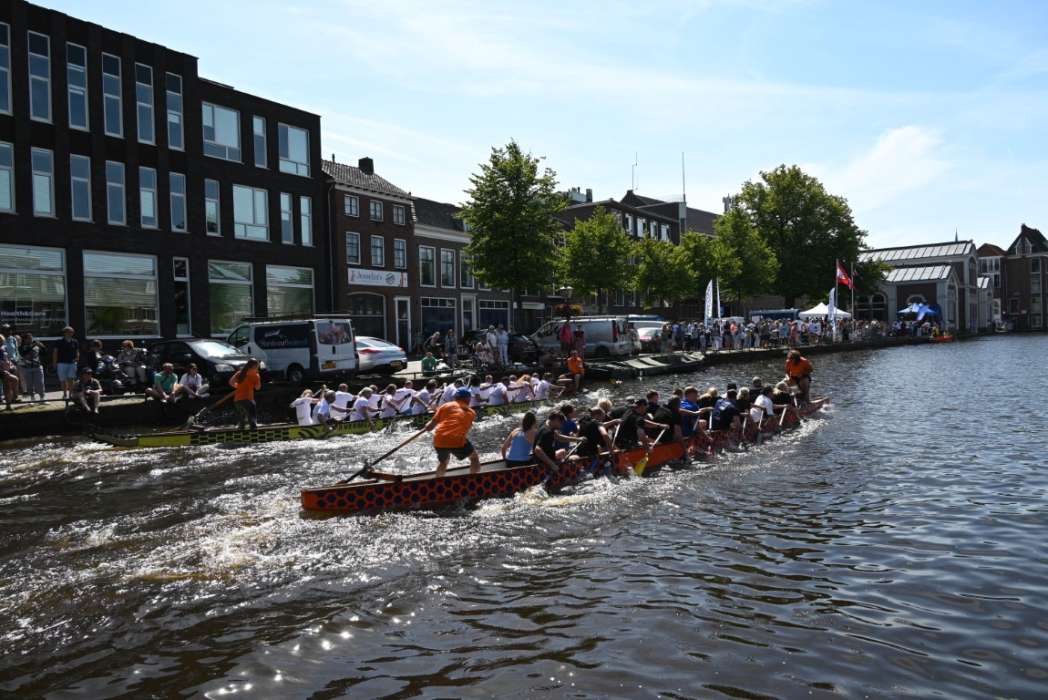 De race die ik van hun team Leidse Draken zag, ging er hard aan toe. Ze lagen halverwege meer dan een bootlengte voor.