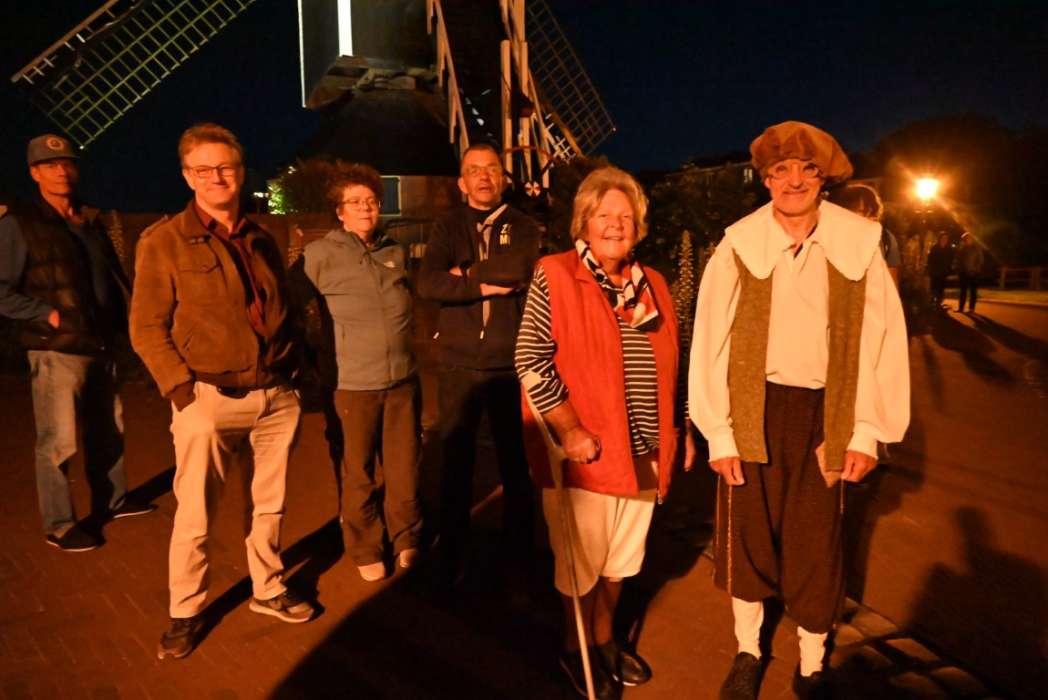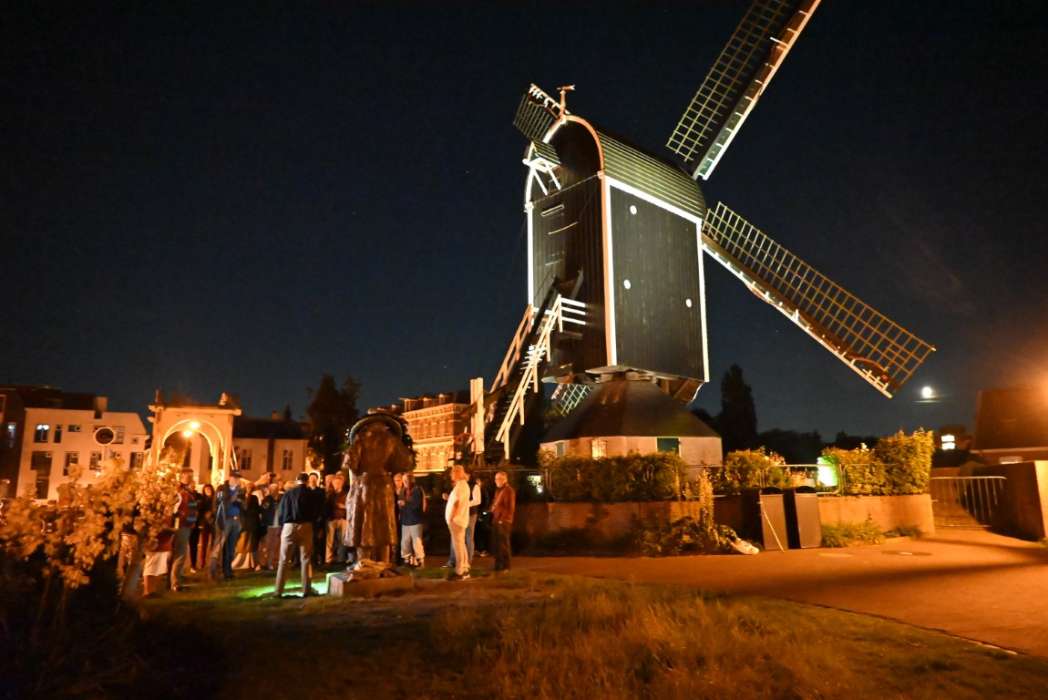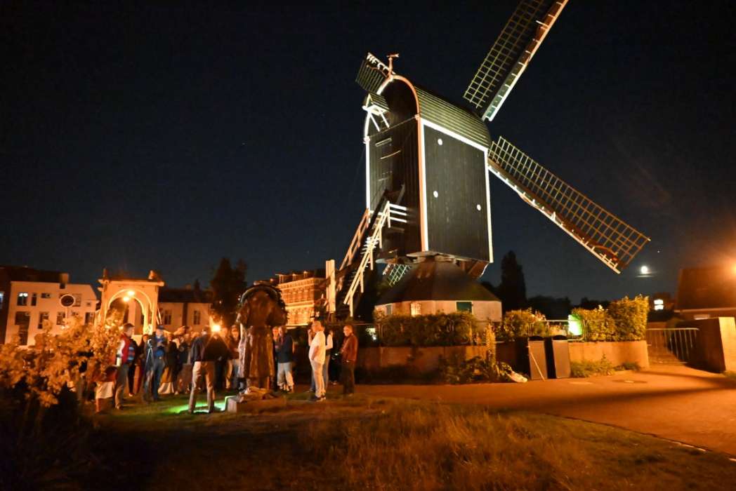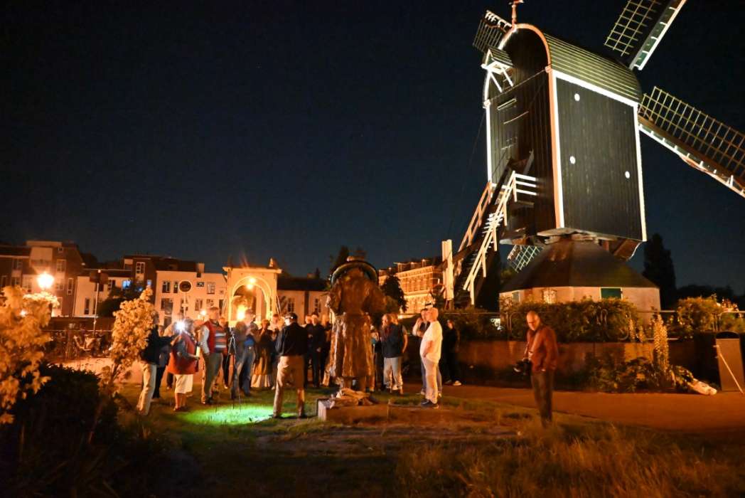 Ik vind het ook wel een heel mooie locatie met de molen (replica) van zijn vader op de achtergrond en zicht op de Weddesteg waar hij geboren is.