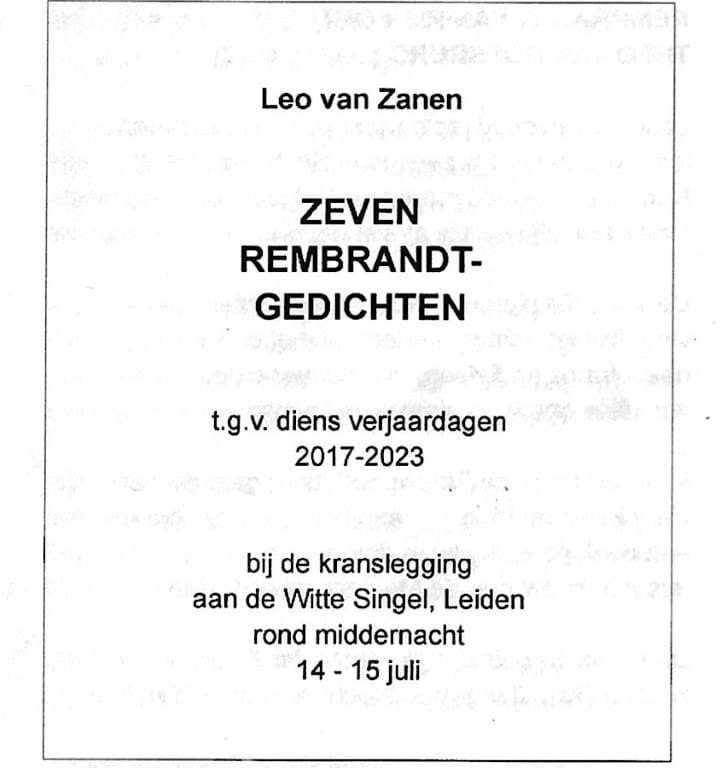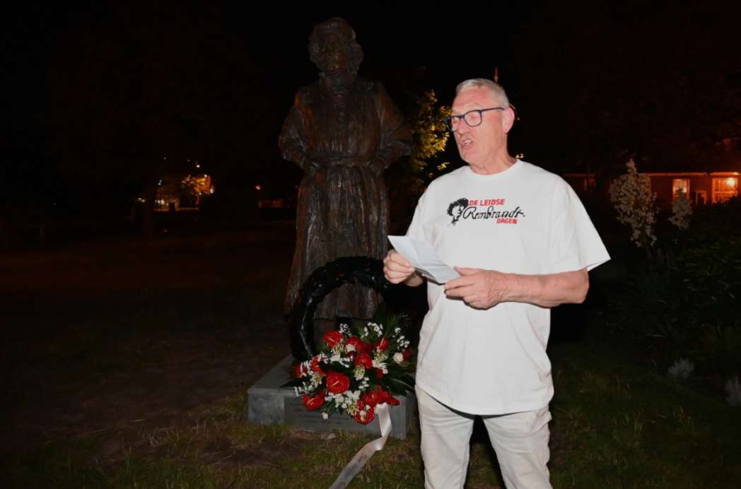 Acht jaar geleden las dichter Leo van Zanen voor het eerst een gedicht over Rembrandt voor na de kranslegging. Het beviel zo goed dat hij het nu al voor de achtste keer mocht doen.