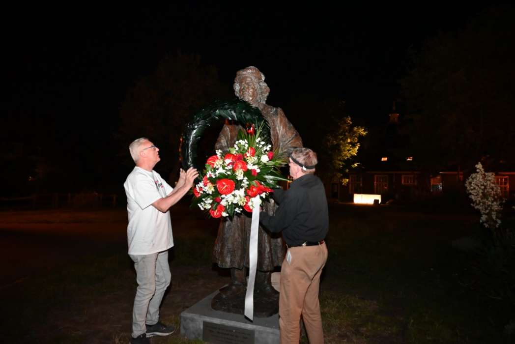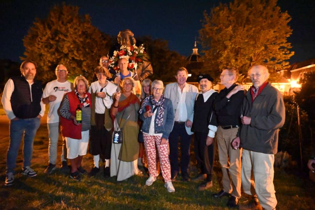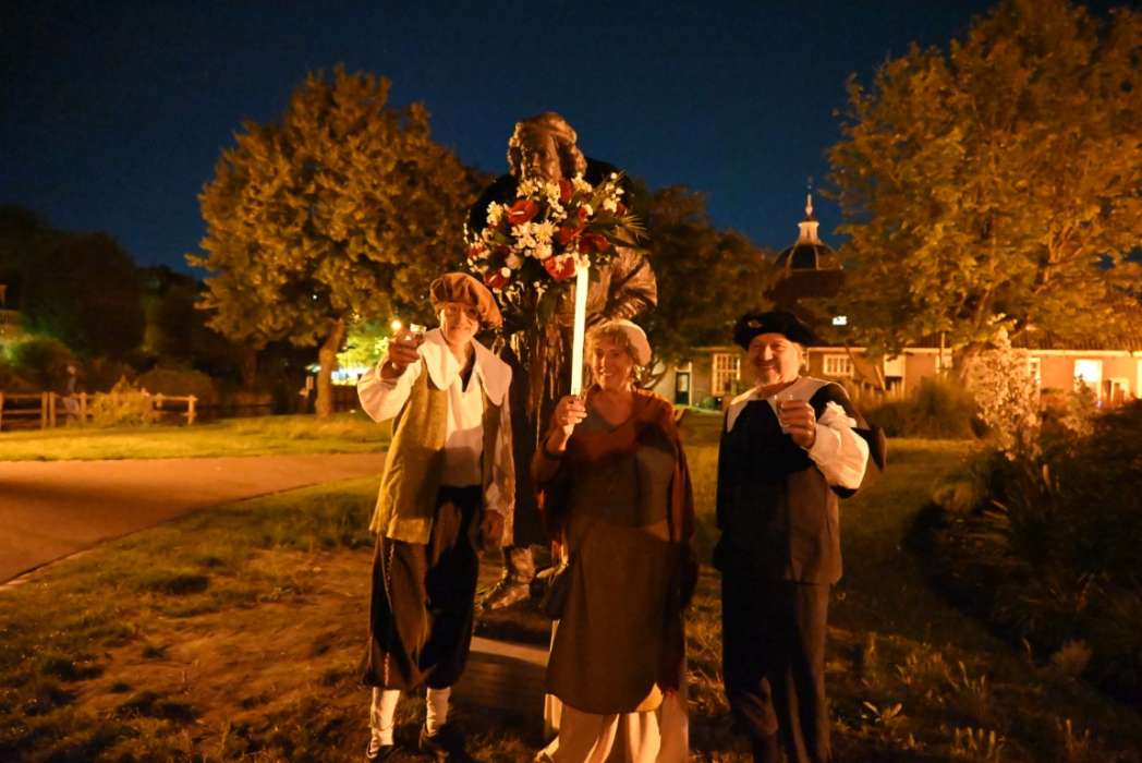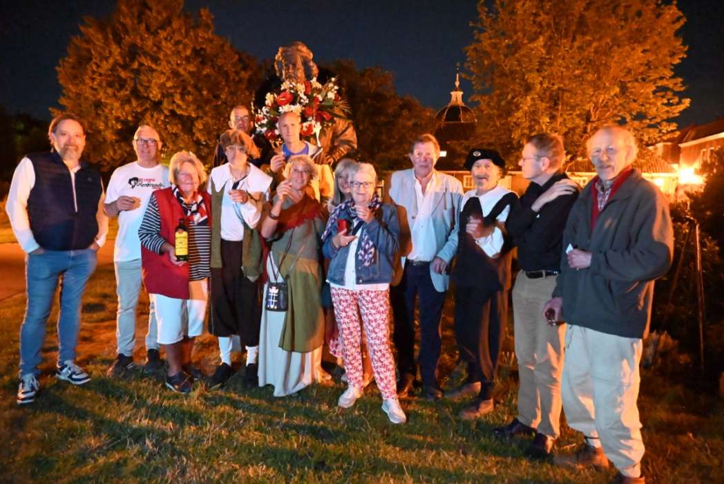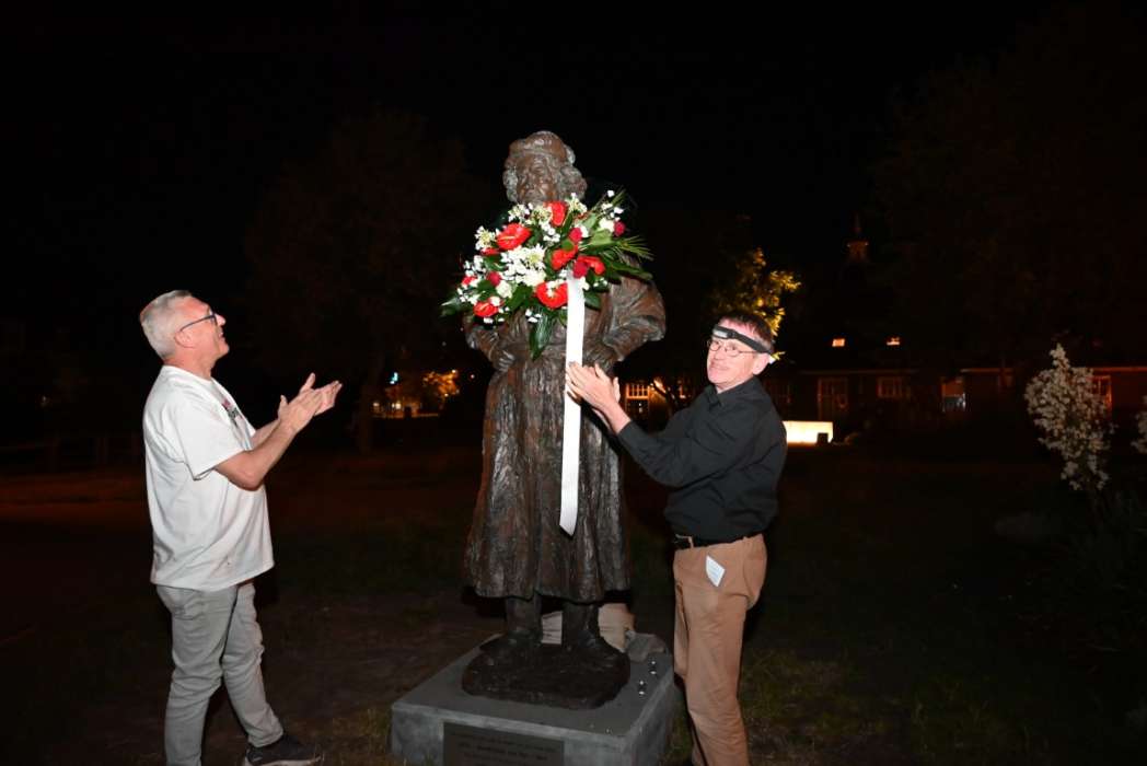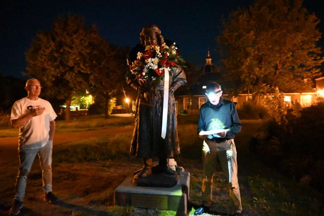 Om twaalf uur hingen Tjeerd Scheffer en dichter Leo van Zanen de krans om de schouders van Rembrandt.