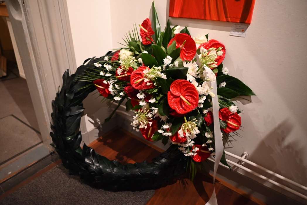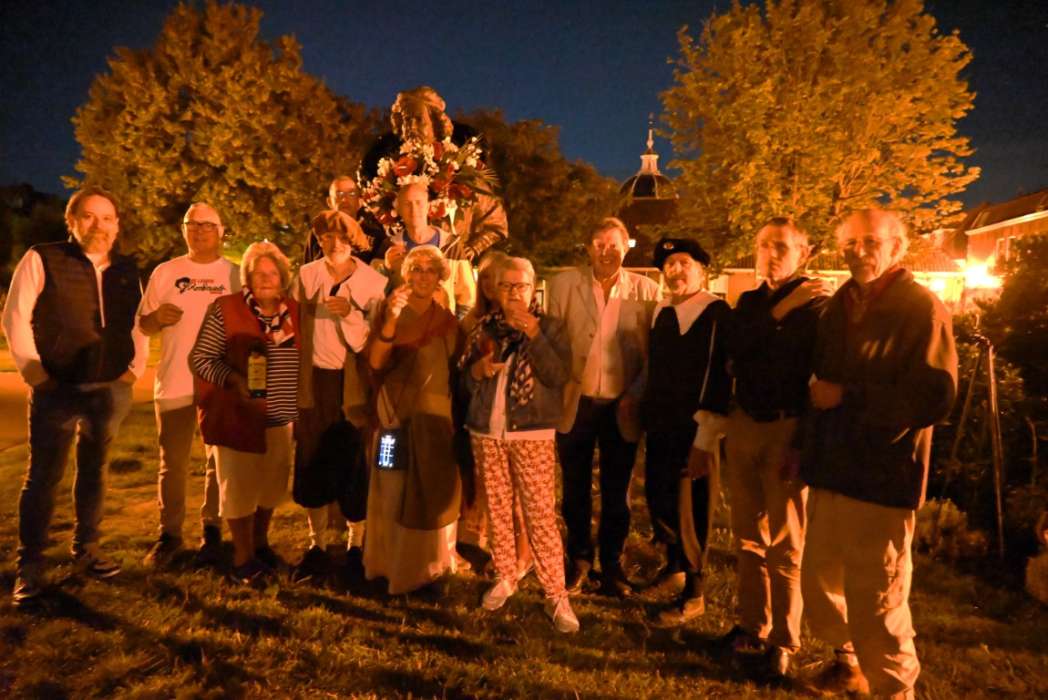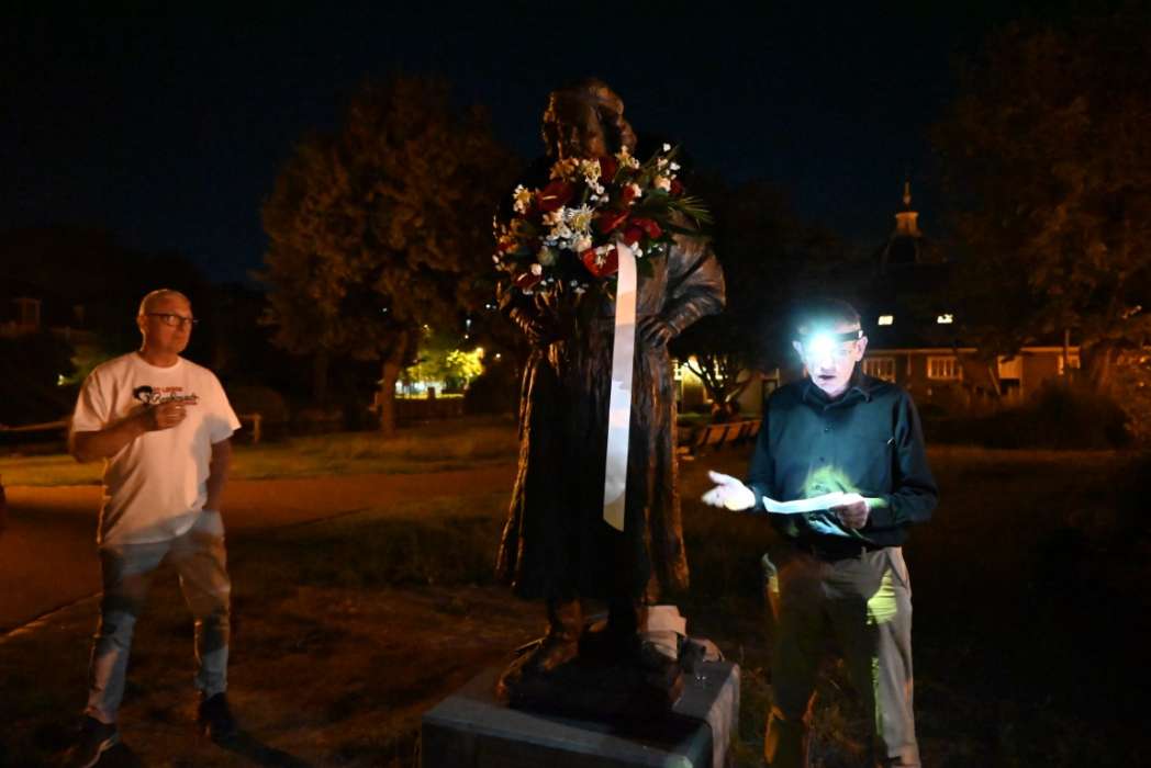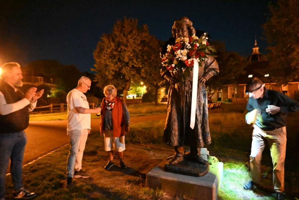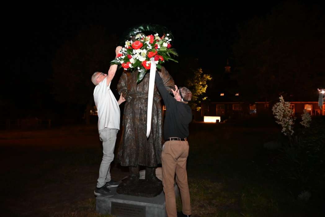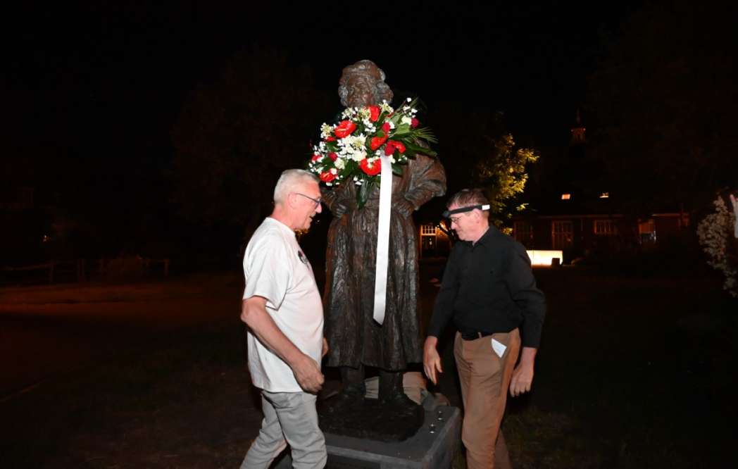 Om twaalf uur hingen Tjeerd Scheffer en dichter Leo van Zanen de krans om de schouders van Rembrandt.
