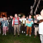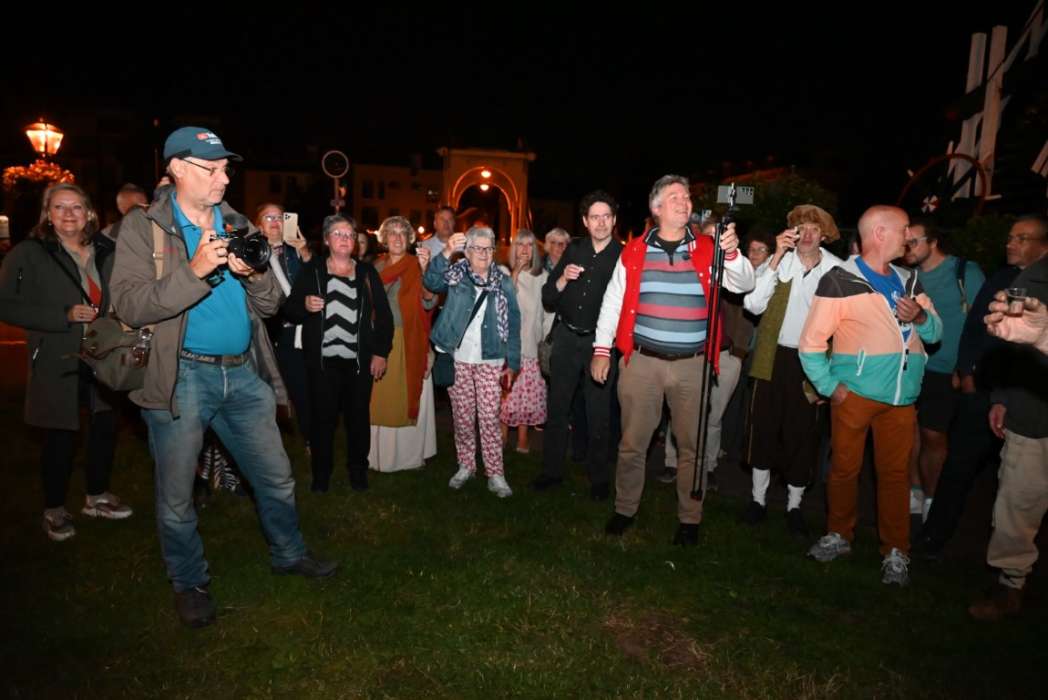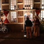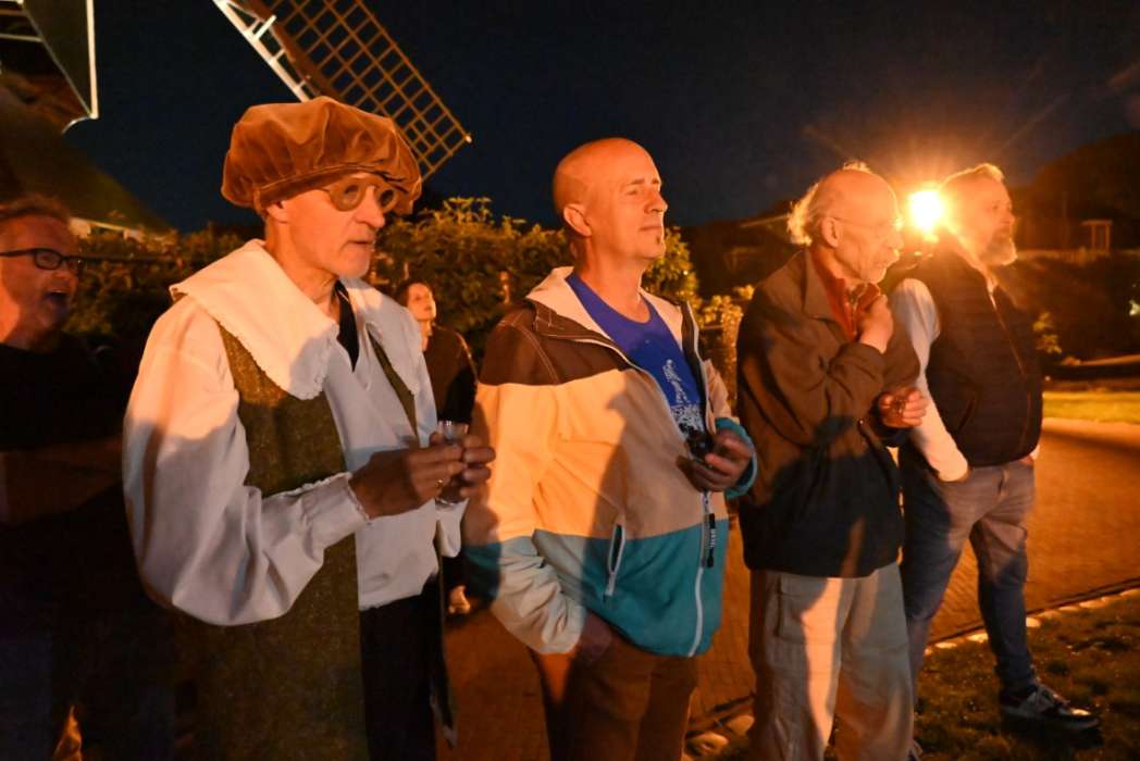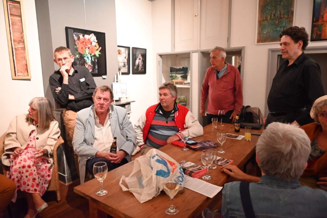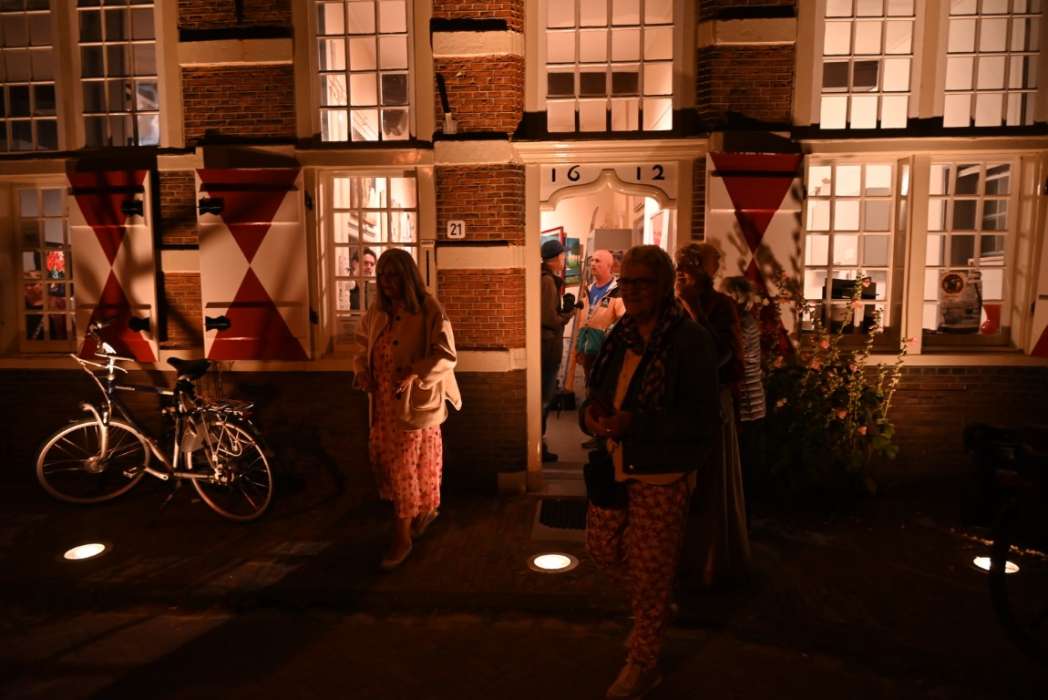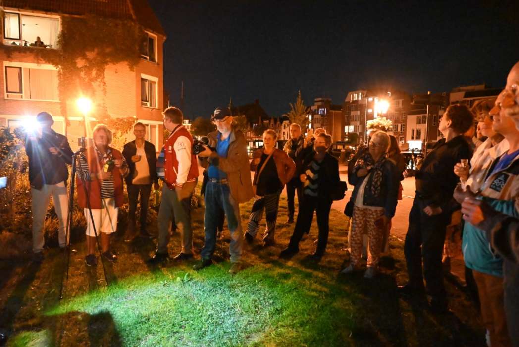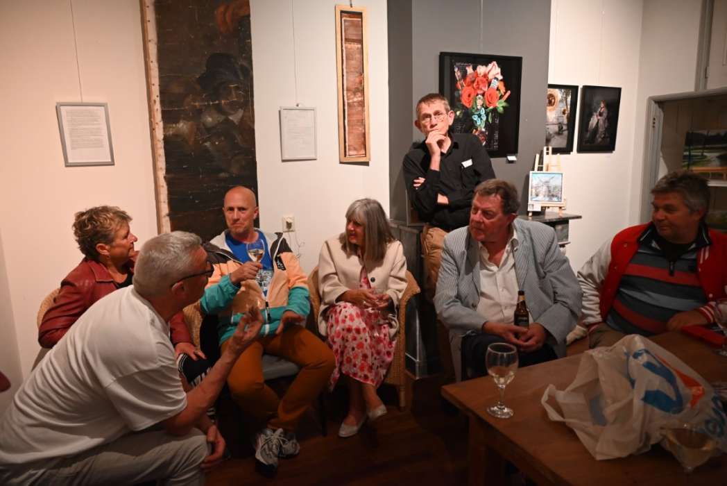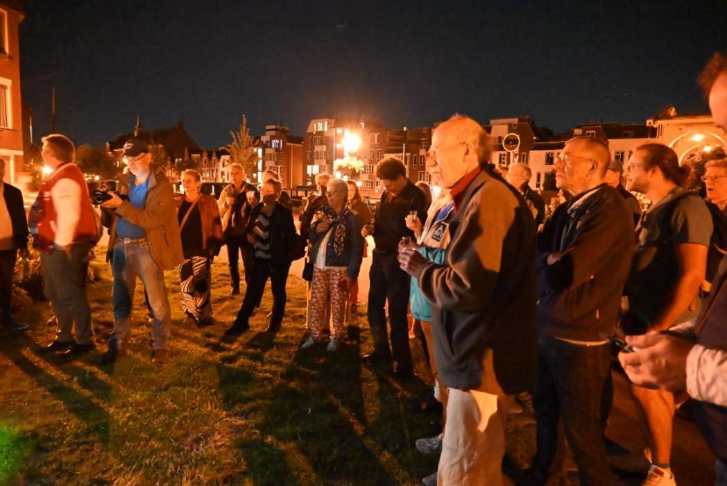 Het is heel wisselend hoeveel bezoekers er bij de borrel zijn, het was nu een behoorlijke groep. Ik heb ook wel eens met zijn tienen in de regen gestaan 🙂