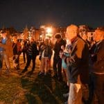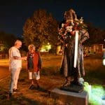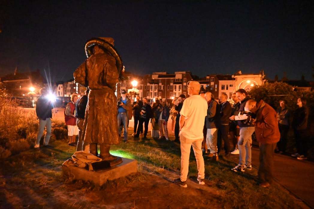 Bij het standbeeld stonden al enkele Leidenaars te wachten.