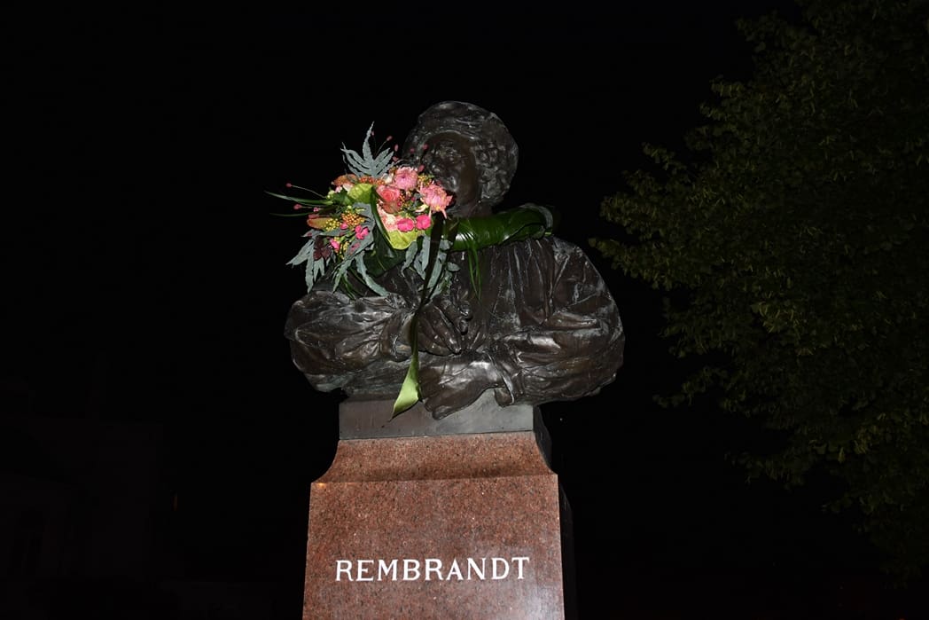 Het is dat beelden niet kunnen praten, maar ik heb het idee dat Rembrandt blij was dat hij eindelijk zijn verjaardag vlakbij huis kan vieren.