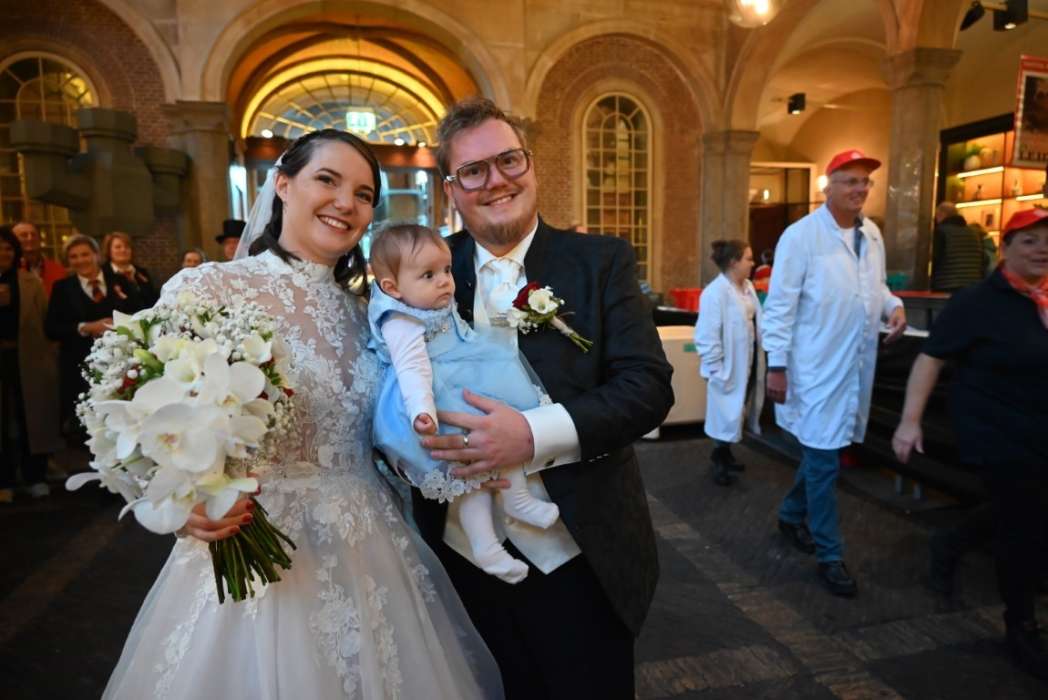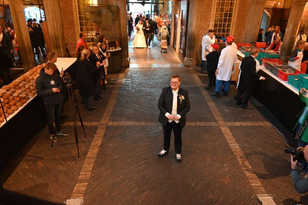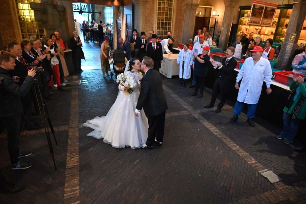 Bijzonder was dit jaar dat er vanwege 450 jaar 3 Oktober twee stellen in het huwelijksbootje stapten, iets wat normaal op 3 oktober niet kan in Leiden. Bruidegom Tom stond in de Waag te wachten totdat hij zijn bruid Rianne in haar trouwjurk mocht zien.