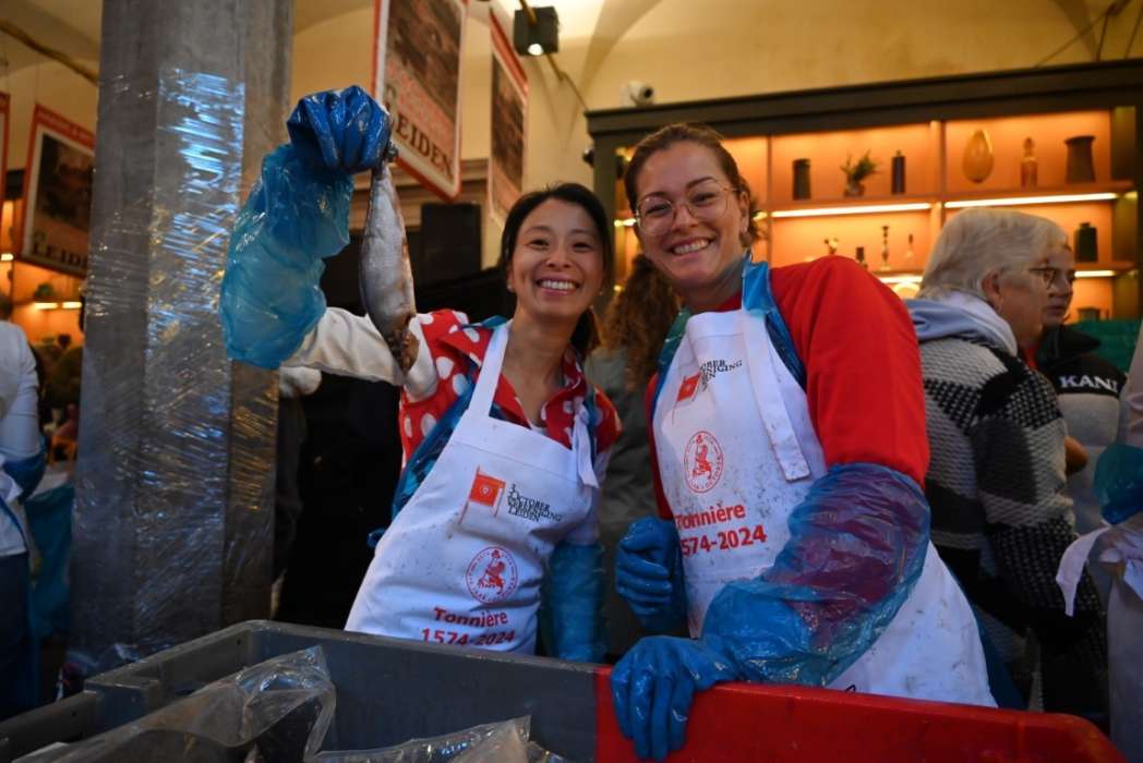 Voor Nancy Heijkoop, de vrouw van burgemeester Peter Heijkoop, was het de eerste keer dat ze haring mocht uitdelen. Kim Remerij, vrouw van 3 October voorzitter Rik Kamps, legde Nancy precies uit hoe alles werkte.