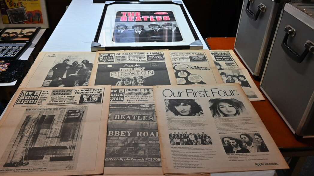 Behalve LP’s, CD’s, video’s vind je er ook veel oude muziekbladen of krantenknipsels.