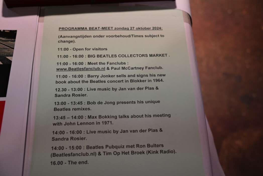 De volgende Beatles Beurs in Scheltema is in april 2025. Meer informatie is te vinden op de website van de Beatlesfanclub. In de fotoslideshow nog een paar sfeerfoto’s, gevolgd door een kort filmpje van het optreden van Sandra Rosier en Jan van der Plas.