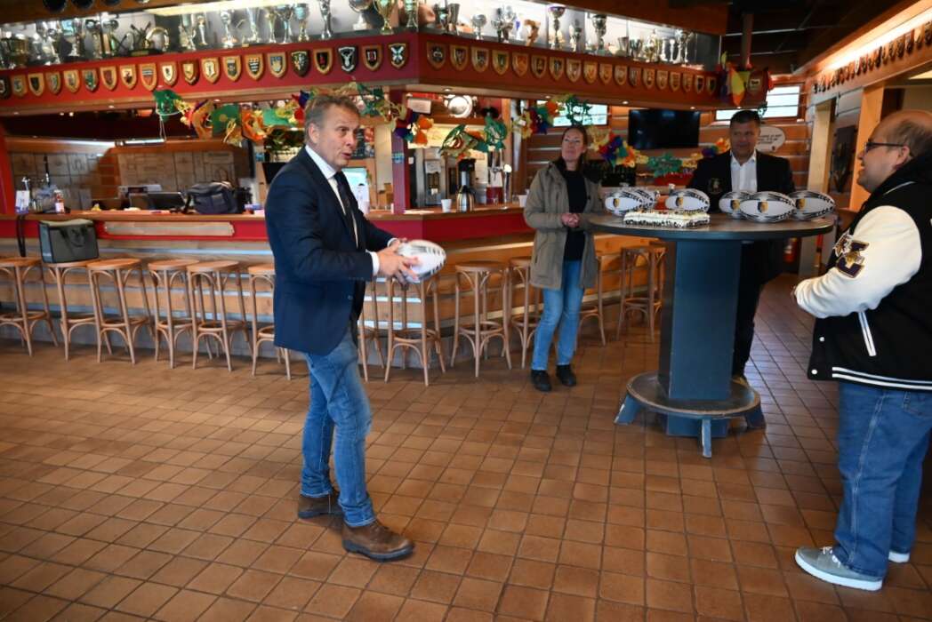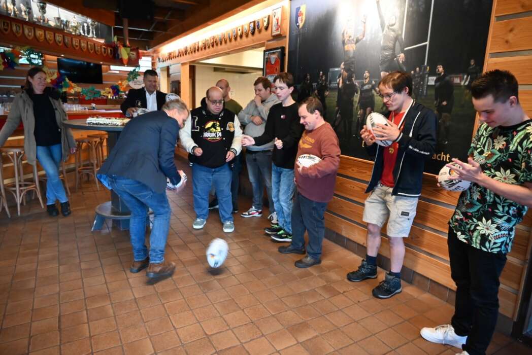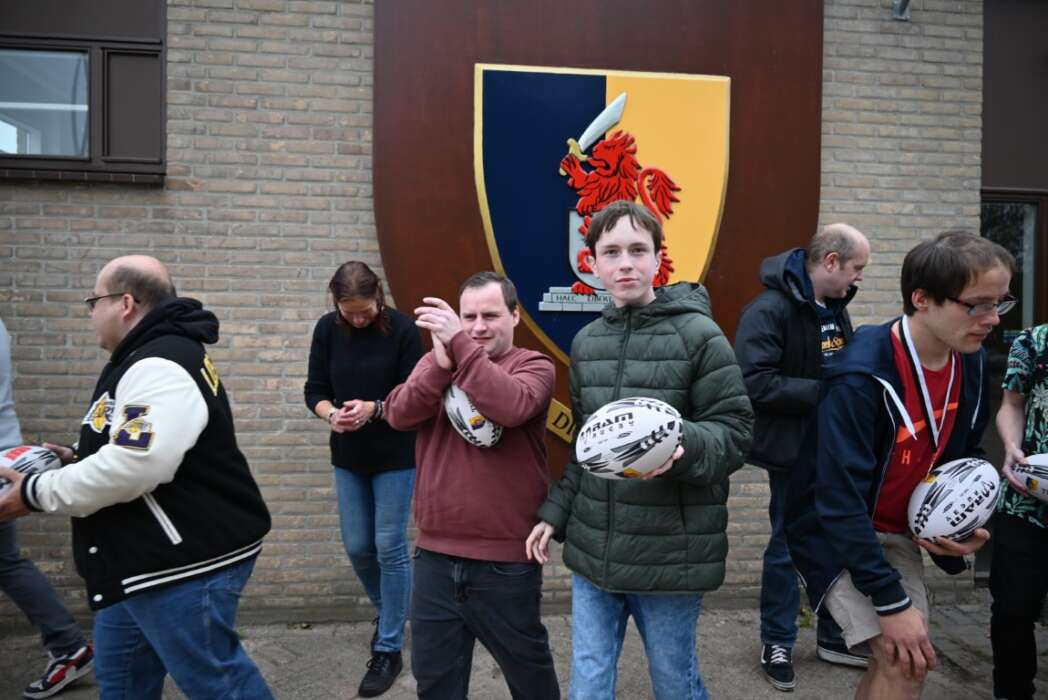Nadat Marcel de jongens bedankt had, vroeg hij of ze wisten waarom een rugbybal plat is en niet rond.