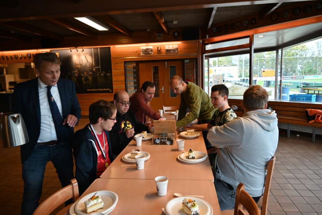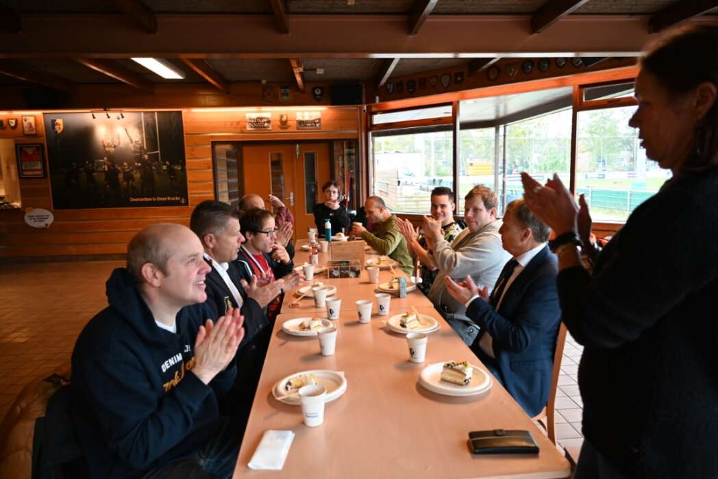 Het was vanmorgen feest in de kantine van Rugby Club DIOK (Doorzetten Is Onze Kracht). Rugby is niet zomaar een sport, maar een way of living met tradities en rituelen. Daarnaast ook een pittige en stoere sport, maar met gedisciplineerde spelers die met veel respect met elkaar, de wedstrijd-officials en tegenstanders omgaan.
