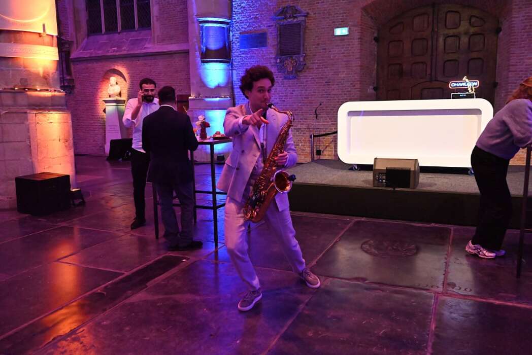 Normaal speelde de band De Staten Generaal, dit jaar liep DJ en saxofonist Charleon liep door de zaal en zorgde voor lekkere muziek.