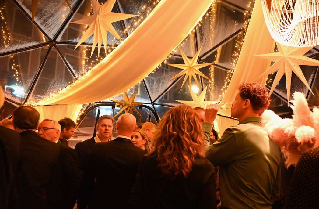 De Business Club Leiden is een serviceclub voor haar leden en geen belangenvereniging en bemoeit zich om die reden dan ook vrijwel nooit met politiek. Voor het eerst in alle jaren dat ik de BCL nieuwjaarsreceptie bezoek hoorde ik een duidelijk commentaar op de gemeente en haar politiek. Het kan zijn omdat we in 2026 weer naar de stembus moeten, maar het jaar is pas acht dagen oud en ik heb al meerdere duidelijke signalen van onvrede over het huidige beleid gehoord. Ik kom er later in dit verslag op terug. De Nieuwjaarsborrel werd gehouden in de tieten van Annies, zoals de prachtige tijdelijke domes in de volksmond heten.