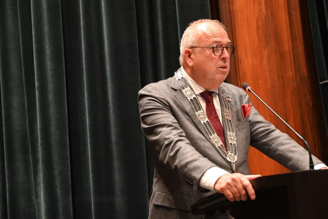 Peter van der Velden heeft natuurlijk een behoorlijke staat van dienst en  was ook in het jaar van zijn burgemeesterschap in Leiden prominent aanwezig. Duidelijk iemand die van toeten of blazen weet.