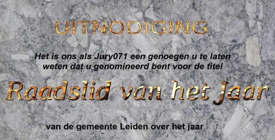 Het is de tijd van de lijstjes, dus ook weer de tijd om het Leids raadslid van het jaar te kiezen. Sinds 2006 wordt in Leiden het raadslid van het jaar gekozen. Het idee kwam destijds van D66 raadsleden Aad van der Luit en Paul van Meenen toen ze nog maar met zijn tweeën in de raad zaten. Zij kozen toen een raadslid dat volgens hen het beste aansloot bij de ideeën van het toenmalige D66. Het eerste raadslid van het jaar was destijds VVD-er Paul Laudy. Nadat D66 met tien zetels in de raad kwam werd er een onafhankelijke jury gevormd en werd de wisselbeker elk jaar uitgereikt tijdens de Nieuwjaarsreceptie van D66.