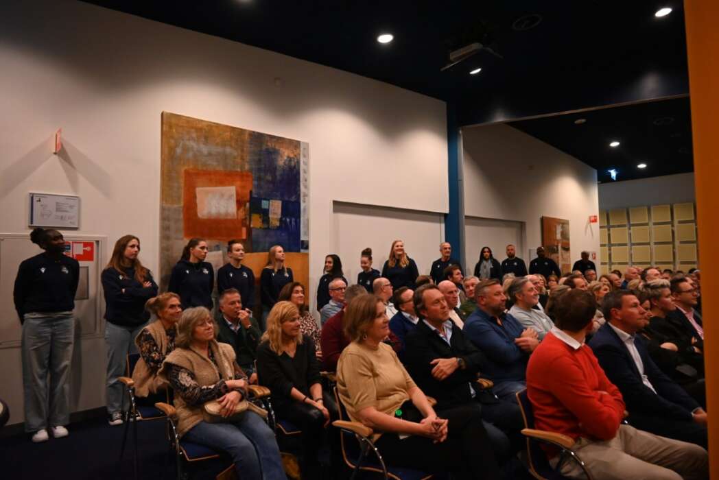 Halverwege de toespraken kwamen ook de spelers van het dames- en herenteam van ZZ Basketbal binnen.