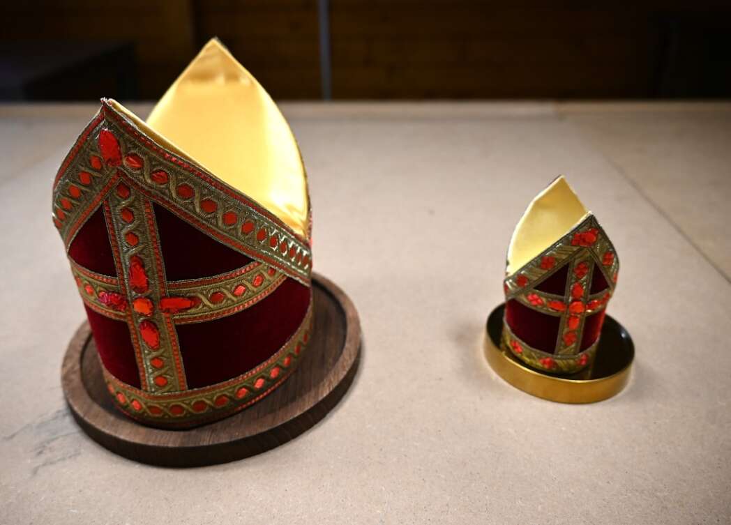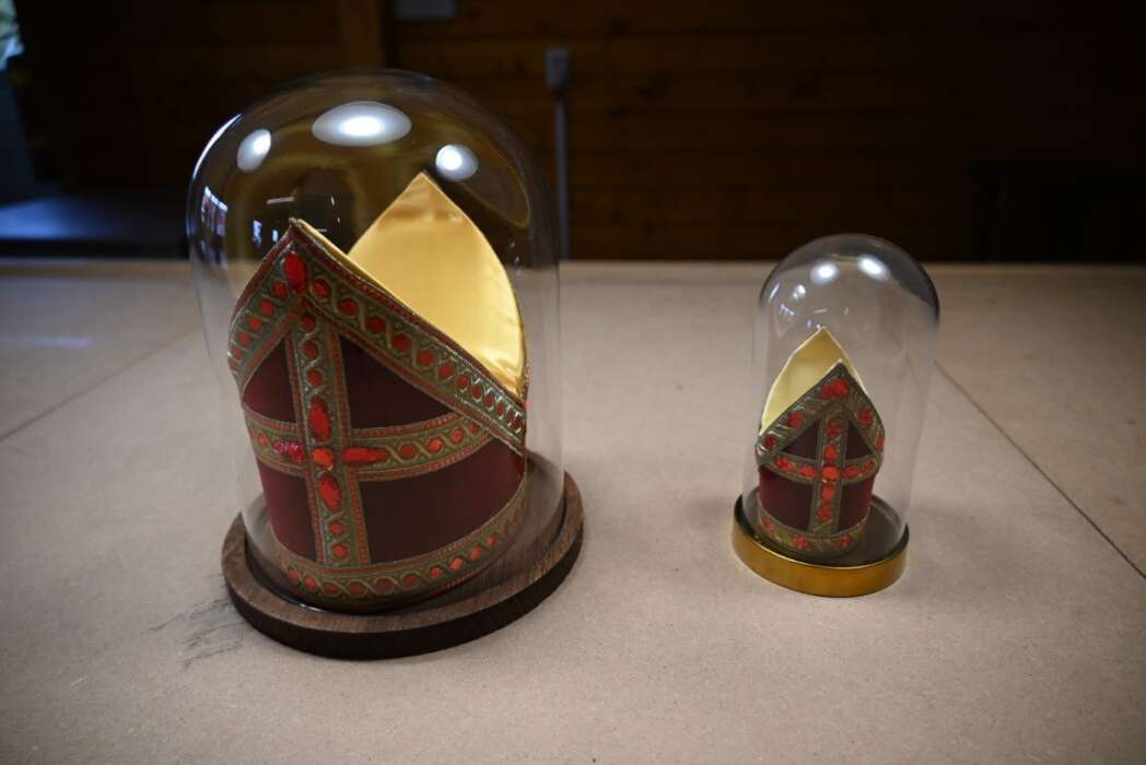 Behalve de ring waren er nog twee typische Sinterklaas attributen, een mini mijter en een mini mini mijter.