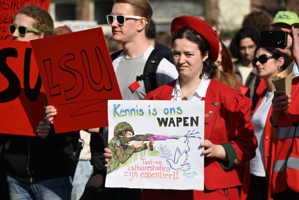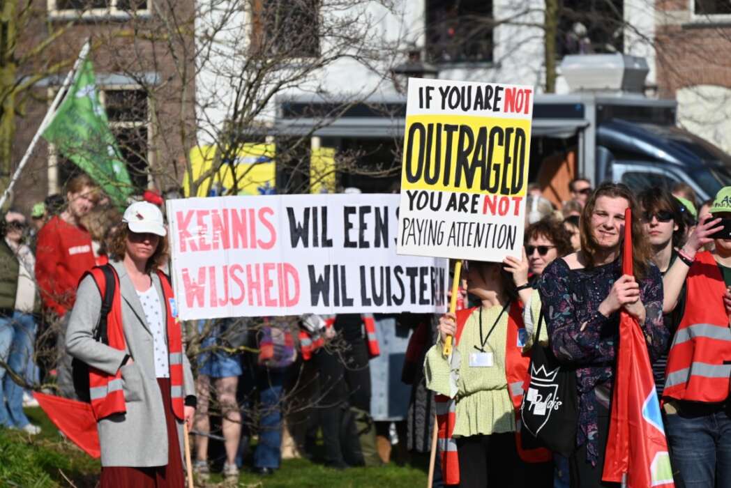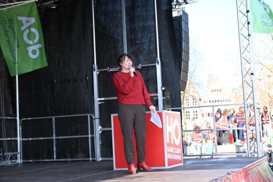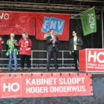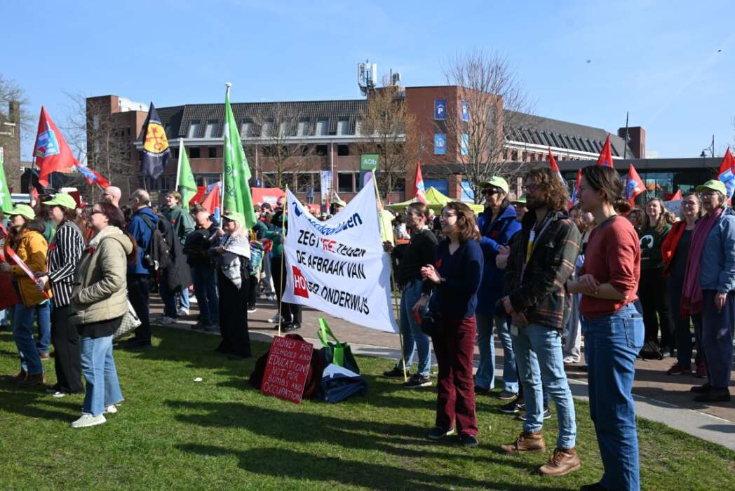 Minister Eppo Bruins en het kabinet willen een miljard aan bezuinigingen doorvoeren op het onderwijs. Doe het niet! Doe het niet! Doe het niet! was de leus die kracht bijzette aan de demonstratie vanmorgen. Daarnaast waren er vele spandoeken en borden die duidelijk maakten dat dit een slecht plan is. Zonder kennis geen toekomst maakte duidelijk waar dit kabinet mee bezig is.Er waren diverse sprekers zoals onder andere Groen Links-PVDA fractieleider Frans Timmermans, Rob Jetten fractieleider D66,  Annetje Ottow, voorzitter van het College van Bestuur van de Universiteit Leiden en Angelien Sanderman,voorzitter van het College van Bestuur van Hogeschool Leiden. Verslaggevers van Omroep Sleutelstad spraken met hen.