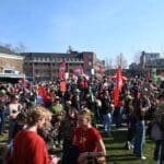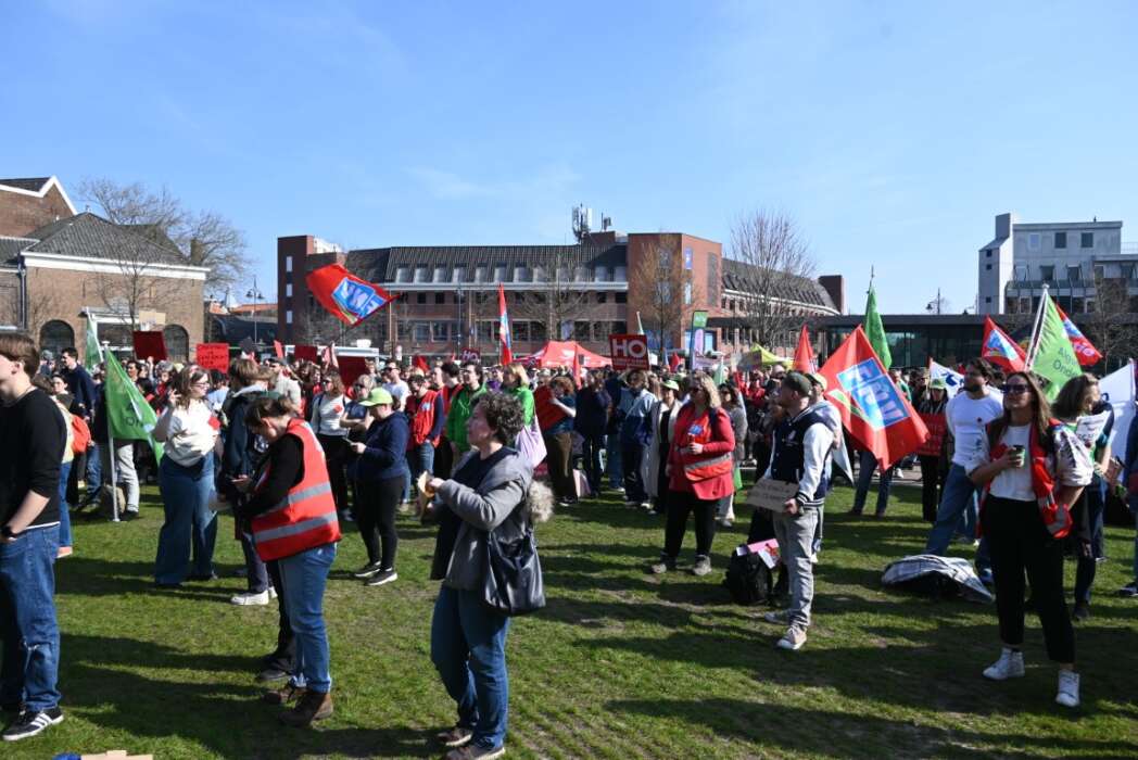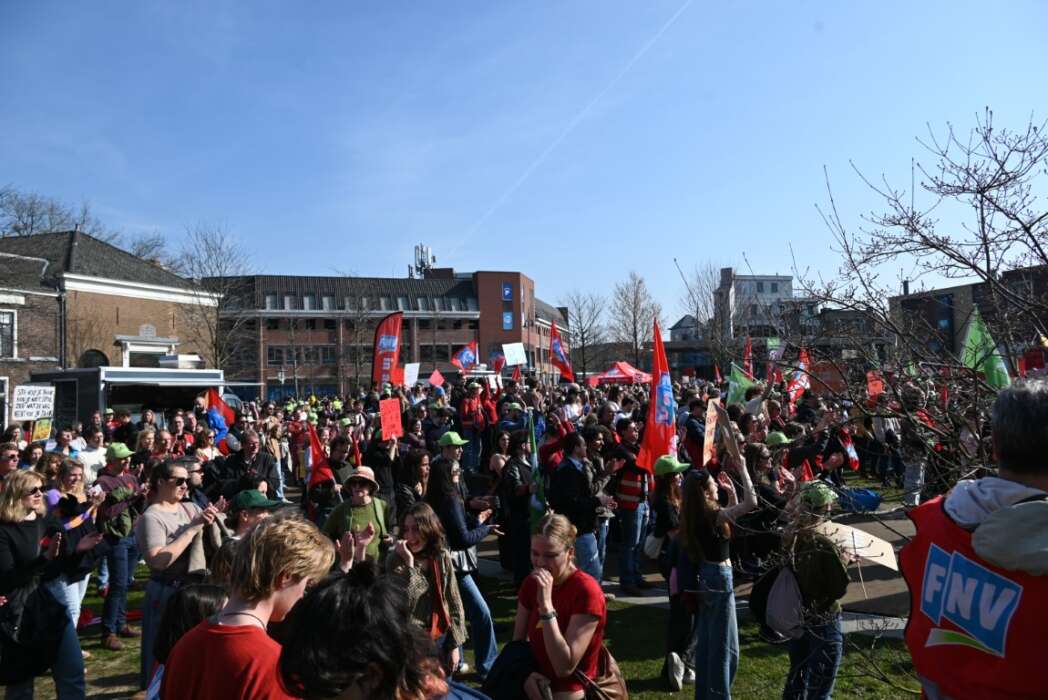 Op het Garenmarktplein verzamelden zich honderden universitaire en HBO studenten, bestuursleden, hoogleraren en medewerkers om te demonstreren tegen de onderwijsbezuinigingen.
