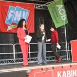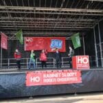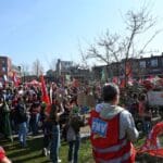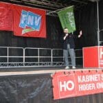 Elke spreker werd met gejuich ontvangen en het Doe het niet, Doe het niet, Doe het niet klonk de hele ochtend over het Garenmarktplein.