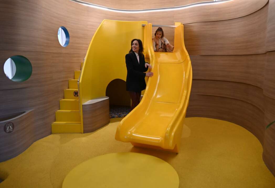 In de Daktuin stonden cameramannen, fotografen, personeel en journalisten, maar voor Harley was het belangrijkste de glijbaan.