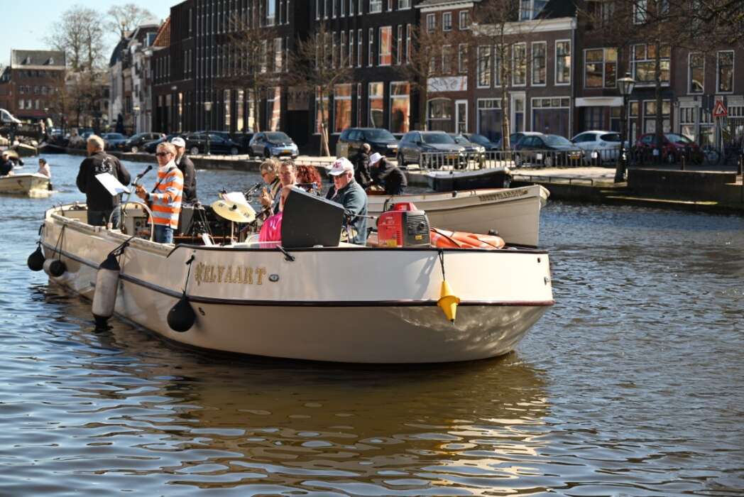 Voorop voer De Welvaart met aan boord de schippersband ‘Rare Geluiden’.