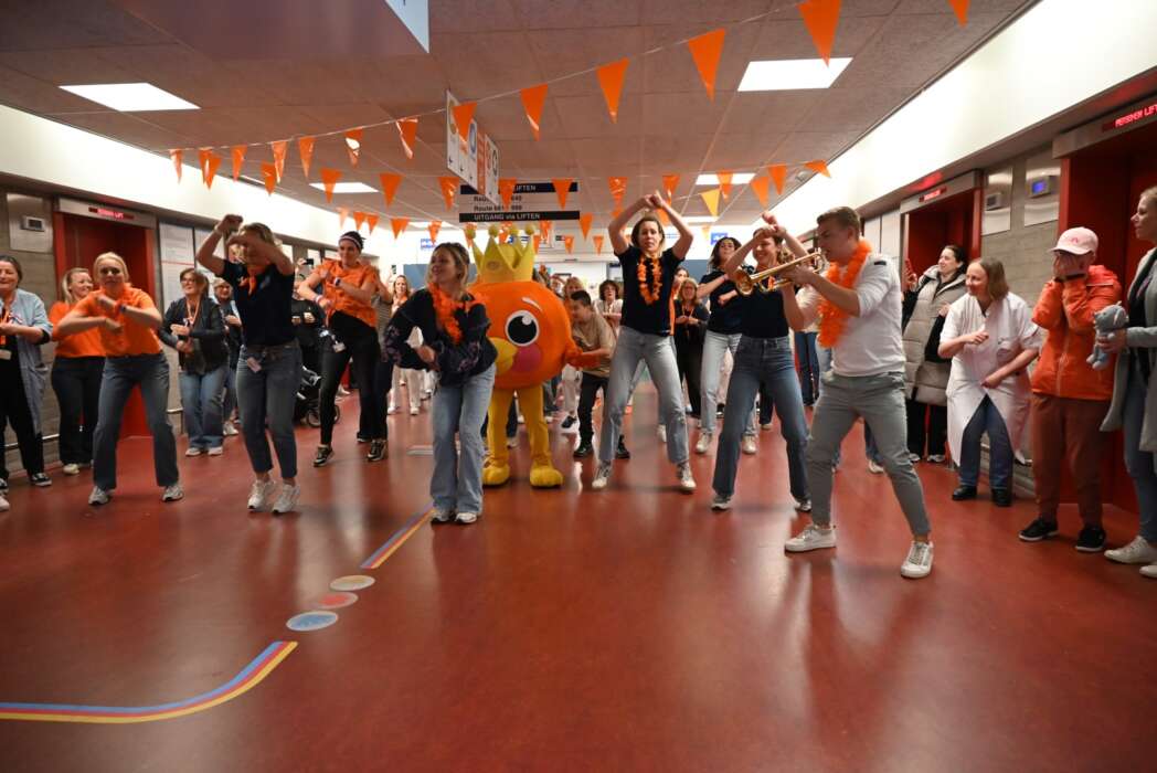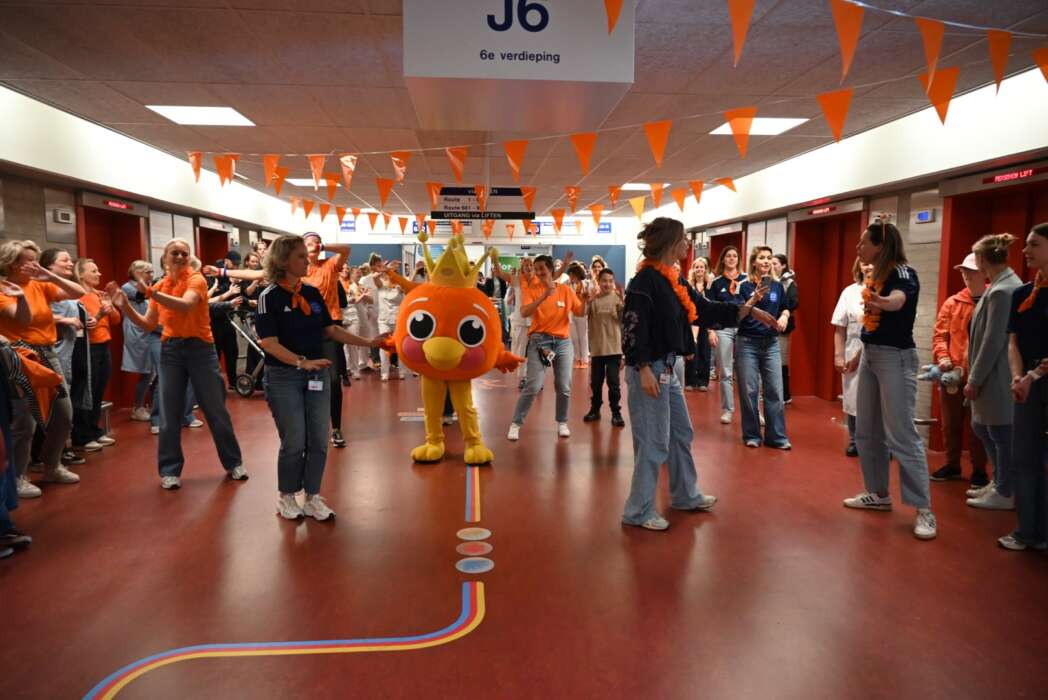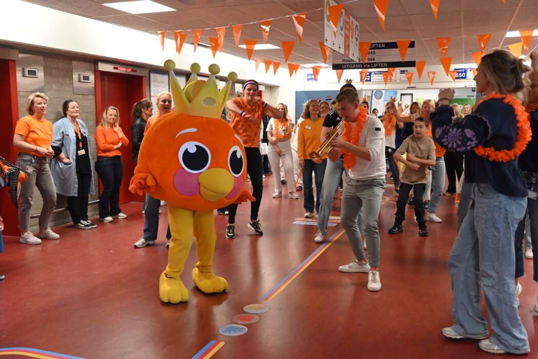 Uiteraard danste ook mascotte KIK mee bij het Koningsspelen lied, terwijl WAKZ ambassadeur en trompettist Jeffrey Parmentier hem begeleidde.