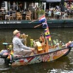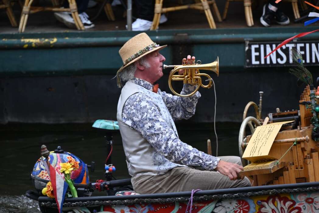 De muziekboot ziet men graag verschijnen in de grachten, ook in Amsterdam.