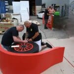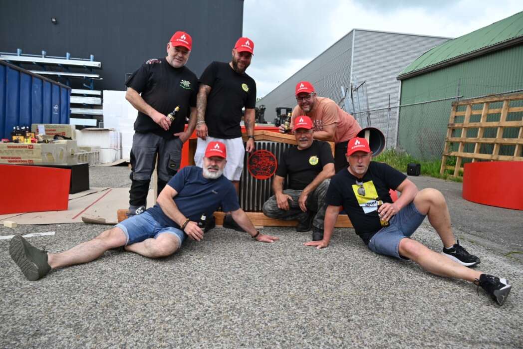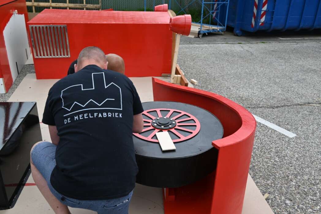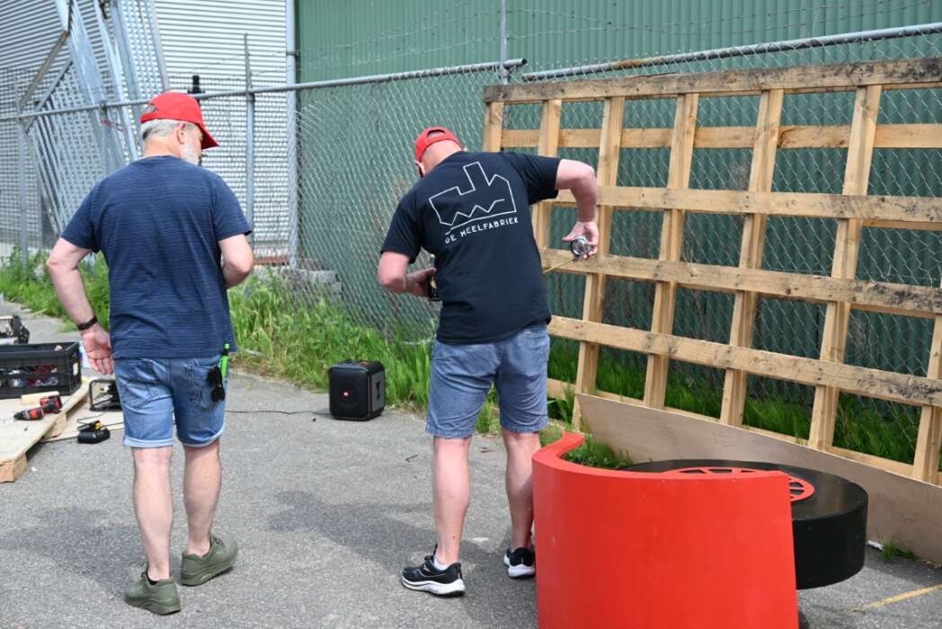 Er wordt elke zondag keihard gewerkt bij de Houtwerf om de Peurbak te bouwen.