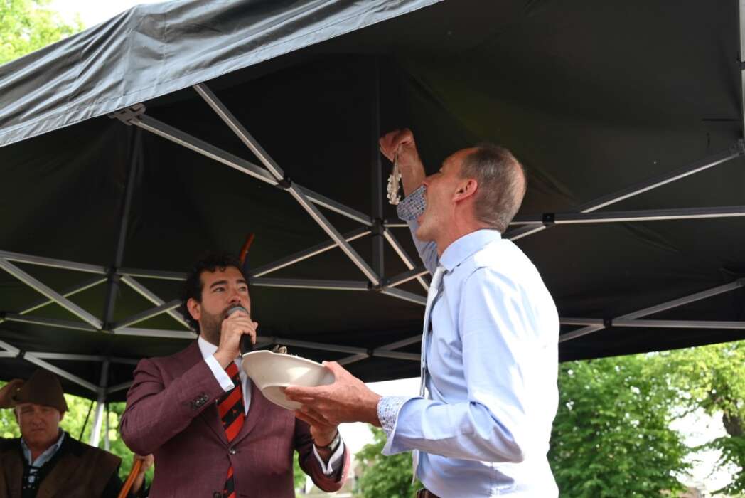 De veiling is altijd behalve leuk ook spannend en belangrijk voor een van de traditionele evenementen van het 3 Oktoberfeest. Van de opbrengst wordt de Hutspotmaaltijd betaald.
