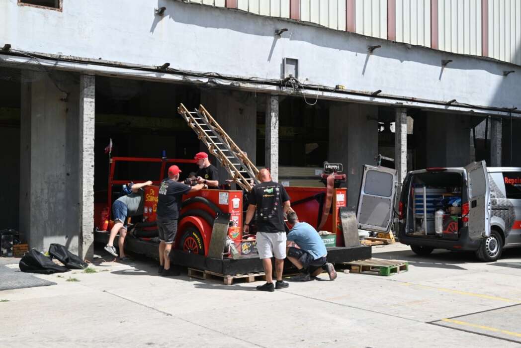 Daarna begon de vliegreis van bluswagen 1574 van de Stamgasten.