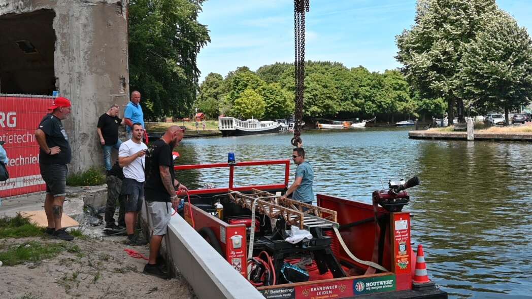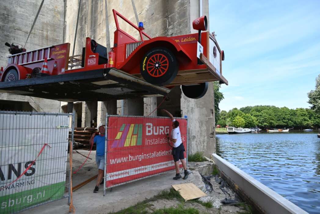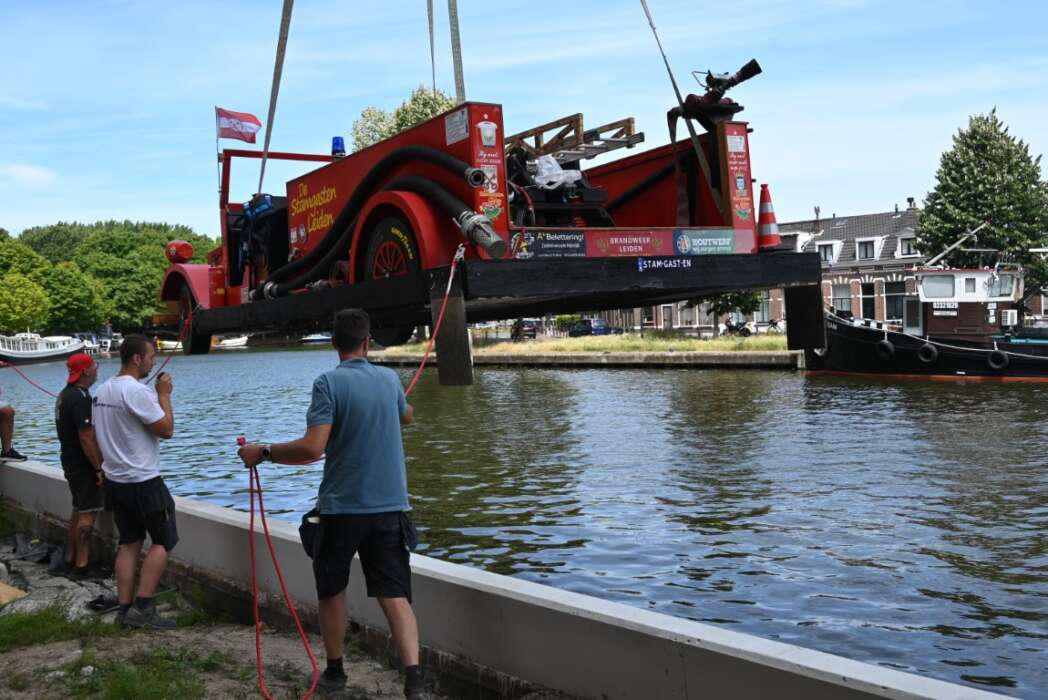 Even later hing de brandweerwagen veilig en wel boven het water.
