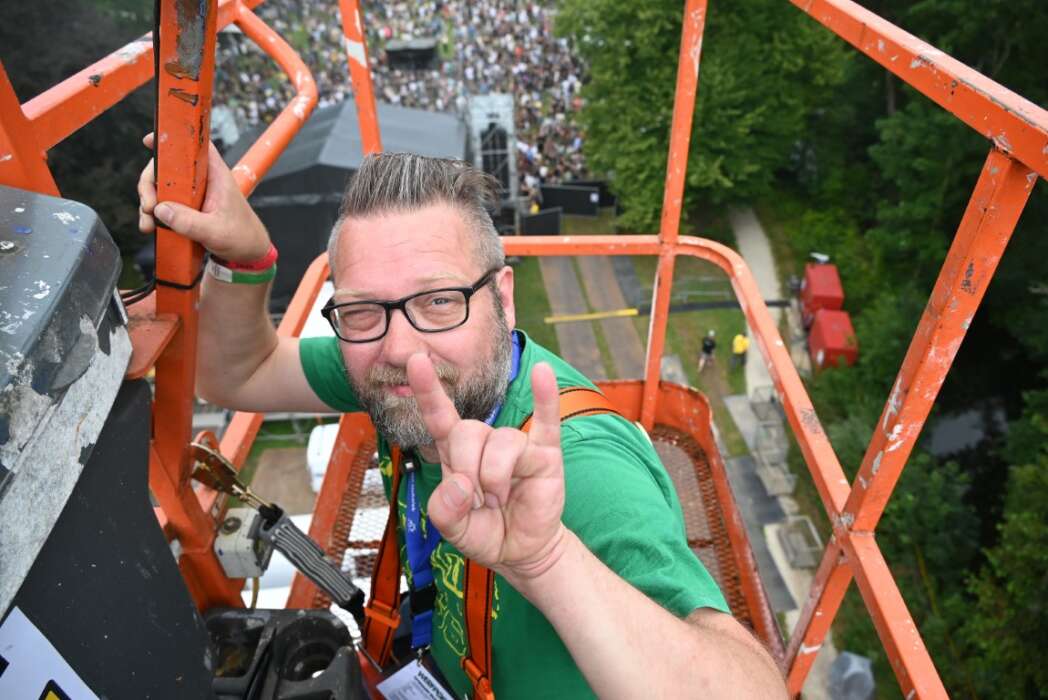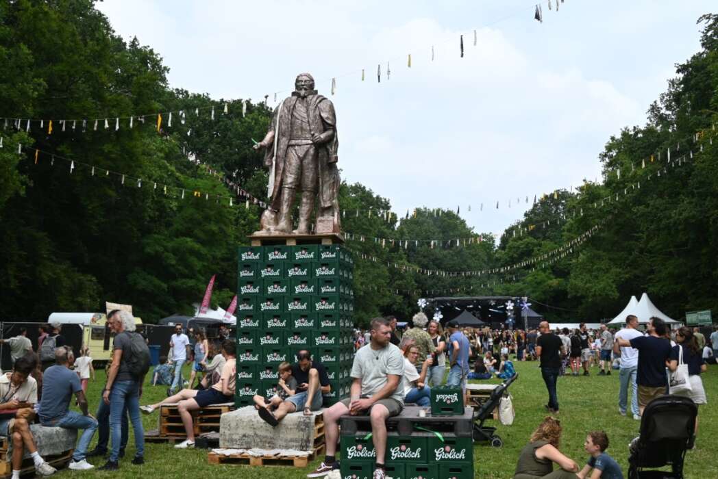 Normaal komt het festival qua bezoekers rustig op gang en is het omstreeks vier uur vol op het veld. Nu liep het veld al tegen twee uur helemaal vol. Midden op het veld staat prominent de replica van het standbeeld van Van der Werf , in zijn park begin in 1982 het festival Werfpop. Om de schouder een tasje met een groet aan Ferry Rigault, de in 2022 plotseling overleden oprichter van Werfpop.