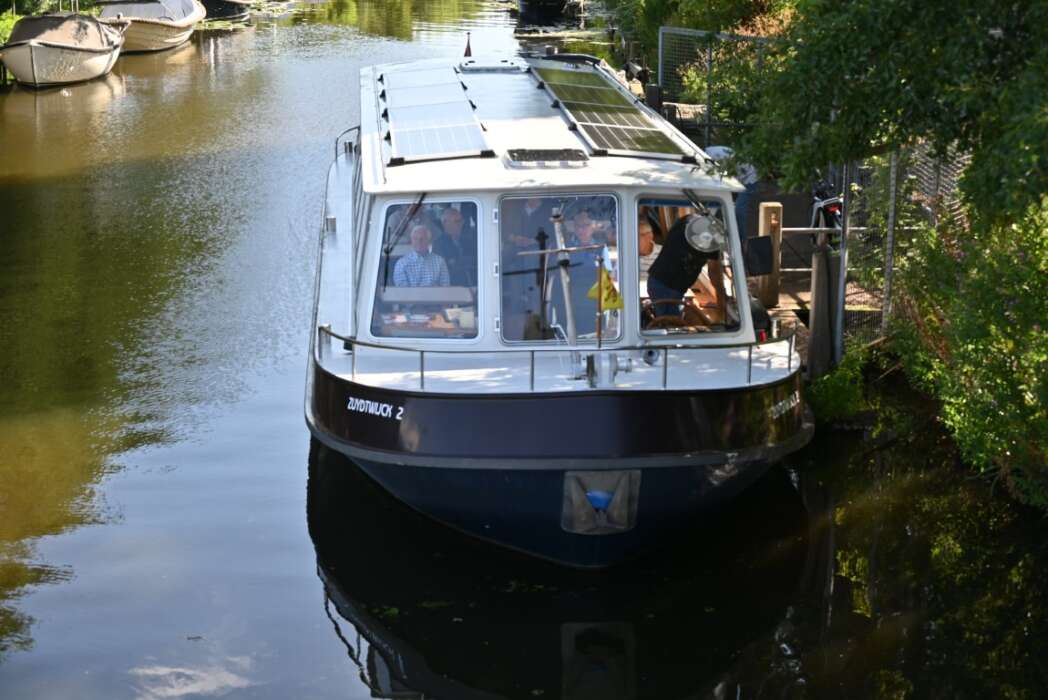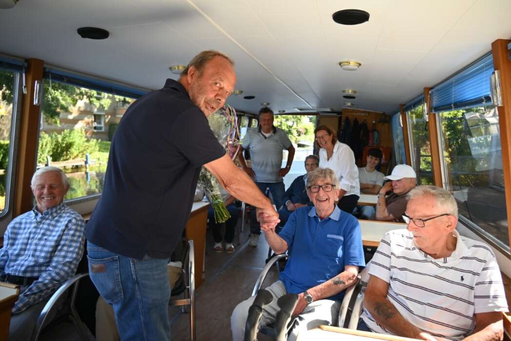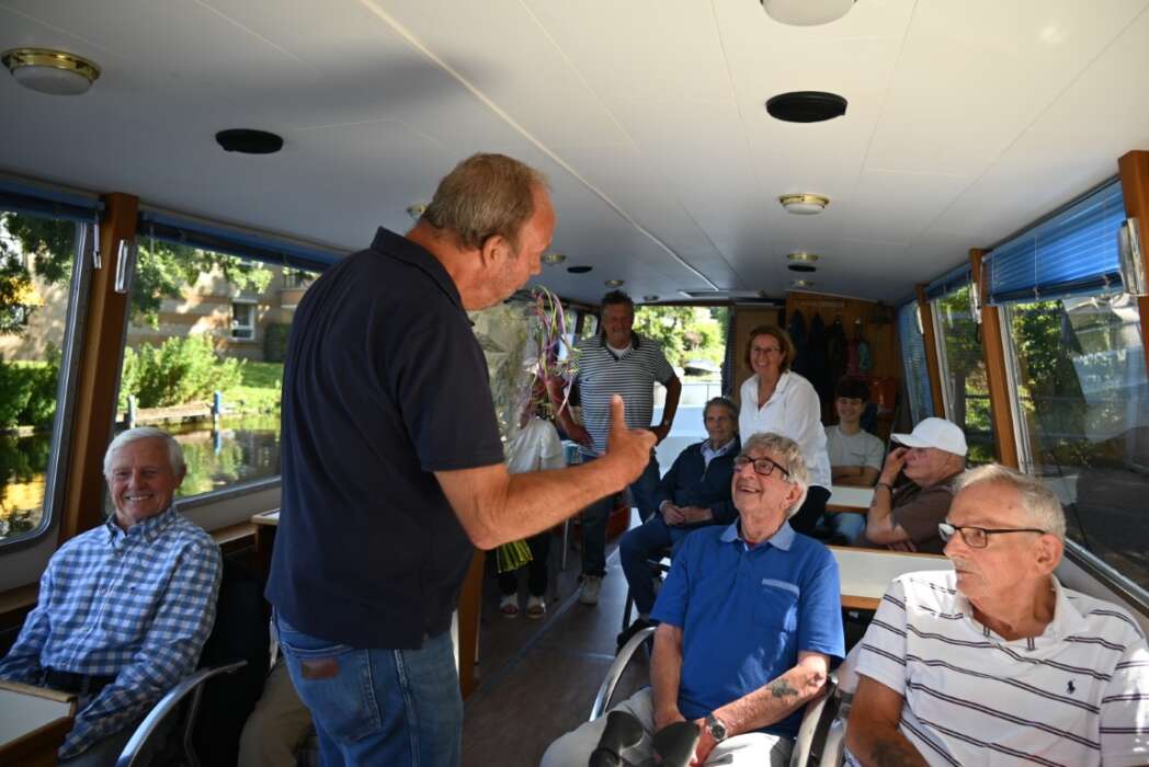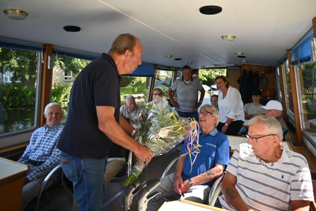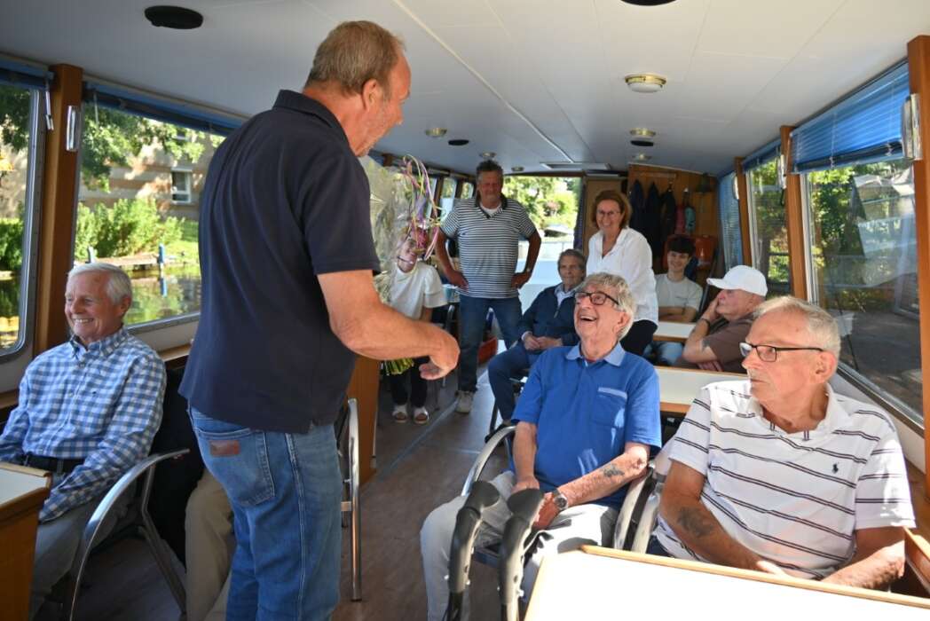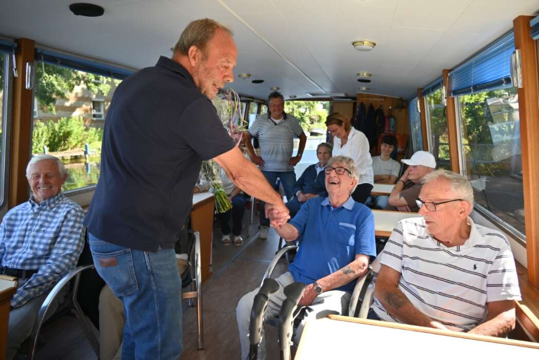 Een groep van 24 vrijwillige schippers vaart van april tot en met oktober met bewoners van zorg- en verpleeghuizen uit heel Nederland, maar voornamelijk uit Zuid-Holland. Voor Schippers Peter Aben en Charles Kop was het een bijzonder en feestelijk vaartje vandaag.