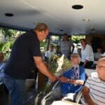 Eigenlijk zou de hele groep bewoners van Verpleeghuis Overduin uit Katwijk de 50.000ste kunnen zijn, maar meneer Hoek ging echt als precies de 50.000ste gast aan boord.
