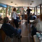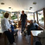 Na de bloemen en de foto’s kon er gevaren gaan worden. Het vaartje ging vandaag richting de Zwaaikom in Katwijk. Voor de bewoners bekend terrein, maar nu vanaf het water.