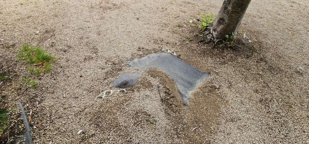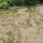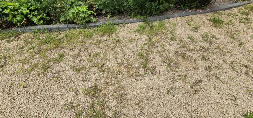Nadeel van onkruiddoek, in de loop van de jaren is er voldoende voedingstof aanwezig tussen de steentjes om het onkruid te laten groeien.
