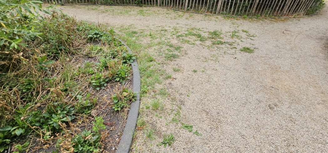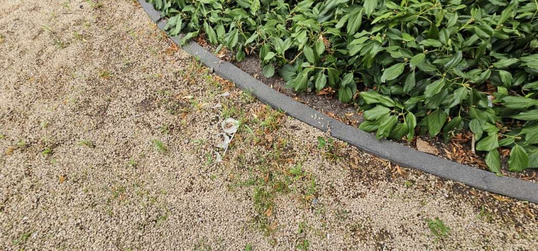 Op zich perfect, maar helaas is het grint na 12 jaar zo goed als verdwenen en komt overal de plastic ondergrond er onder vandaan. Daarnaast begint het onkruid steeds meer het grint te overwoekeren.