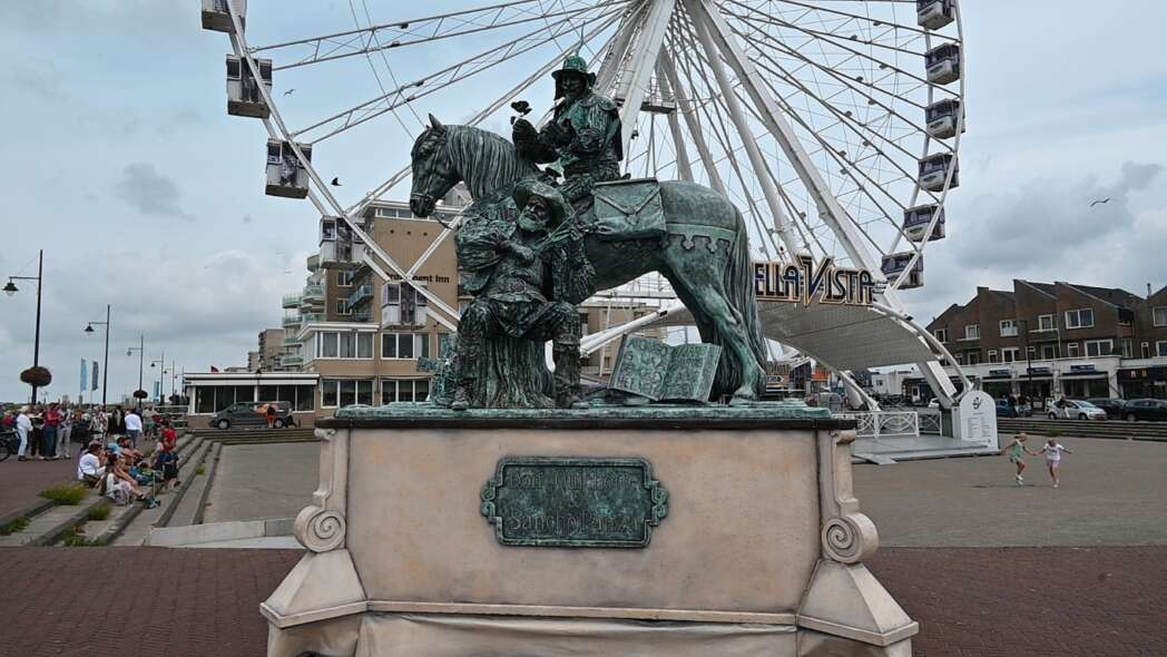 Bij het gat van Palace stond een immens beeld van Don Quichotte en Sancho Panza.