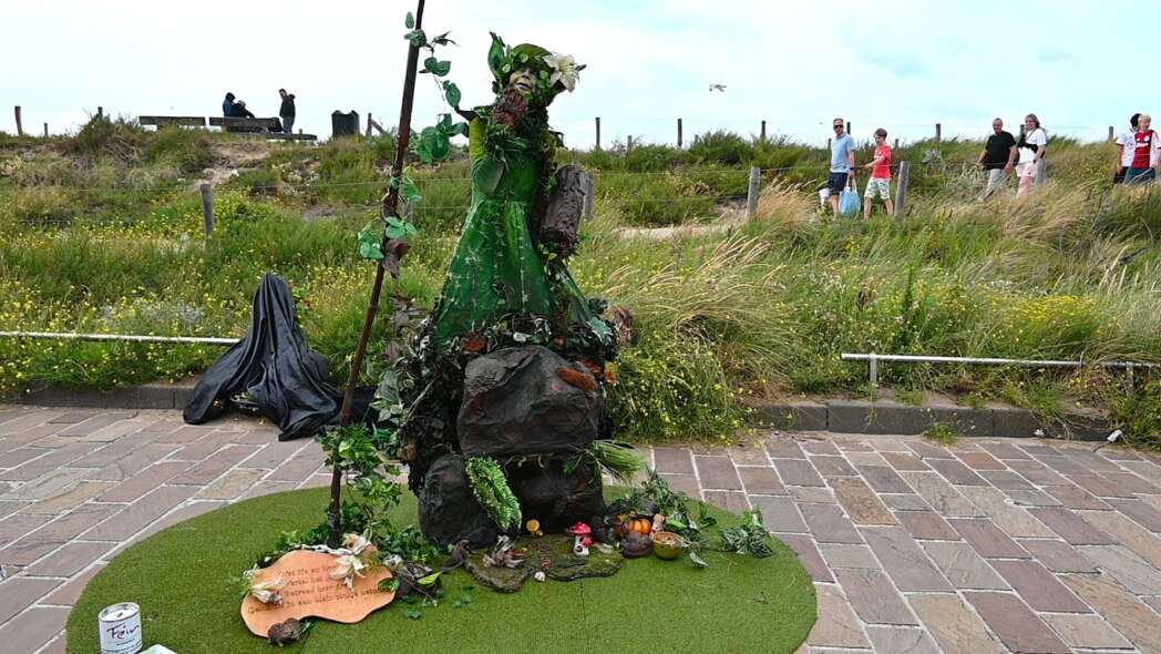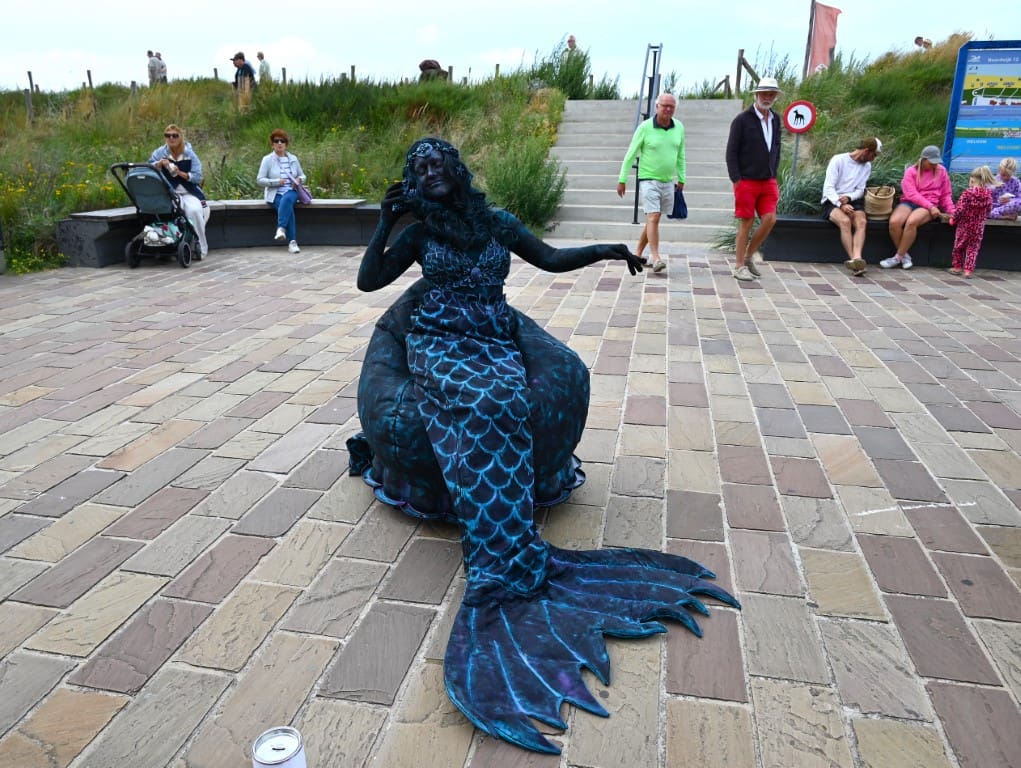 Vanaf zee naar de boulevard is maar een klein stukje. Deze zeemeermin had dan ook een lage reiskostenvergoeding denk ik.
