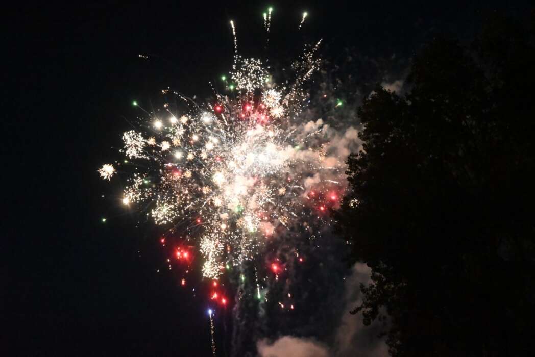 De Rijnsburgse Feestweek en de Flower Parade worden op zaterdagavond afgesloten met vuurwerk. Voor het vuurwerk begon was er nog een optreden van de Floraband.