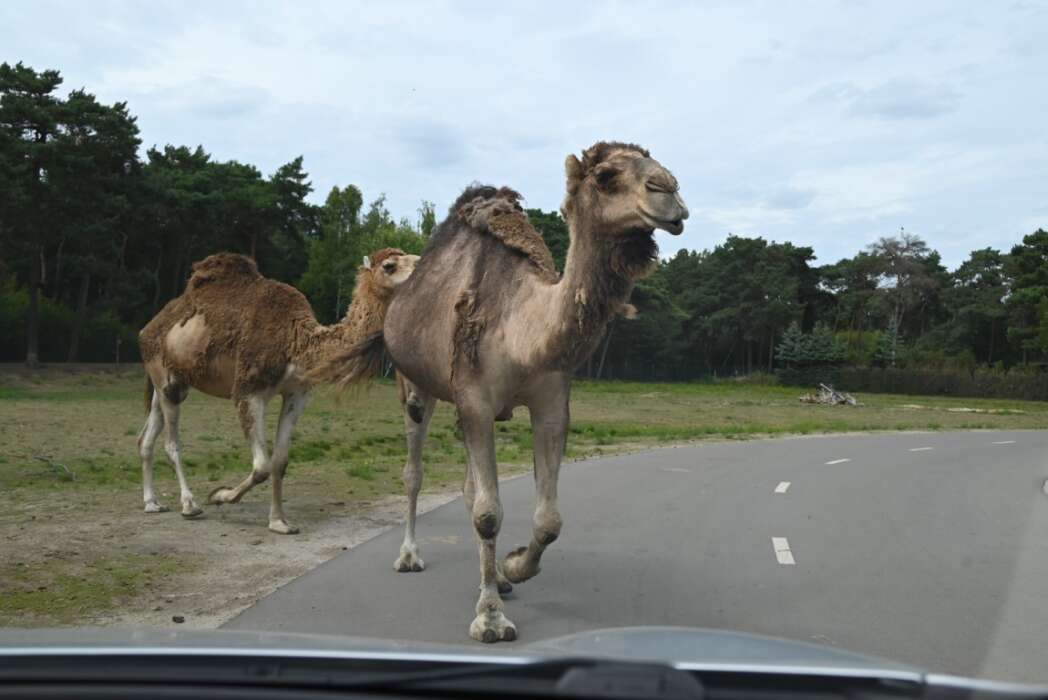 We stapten weer in de auto voor het tweede deel van de rit. Dit zijn Dromedarissen omdat ze maar één bult hebben.